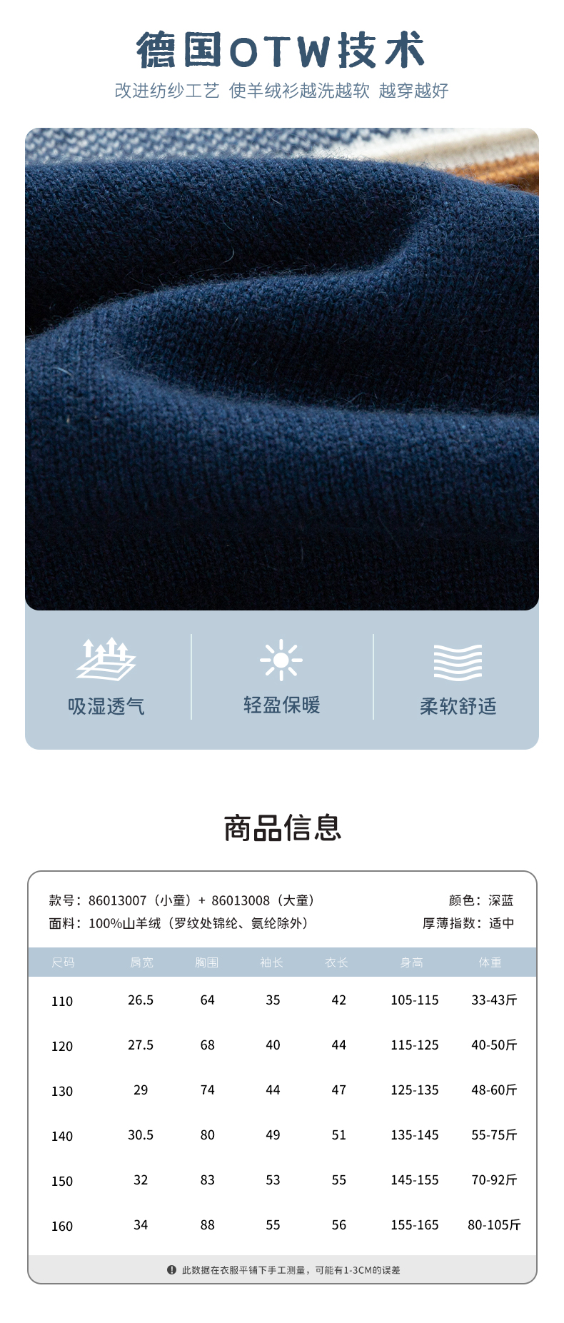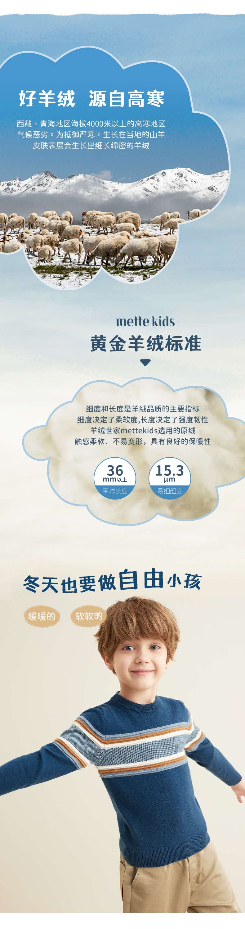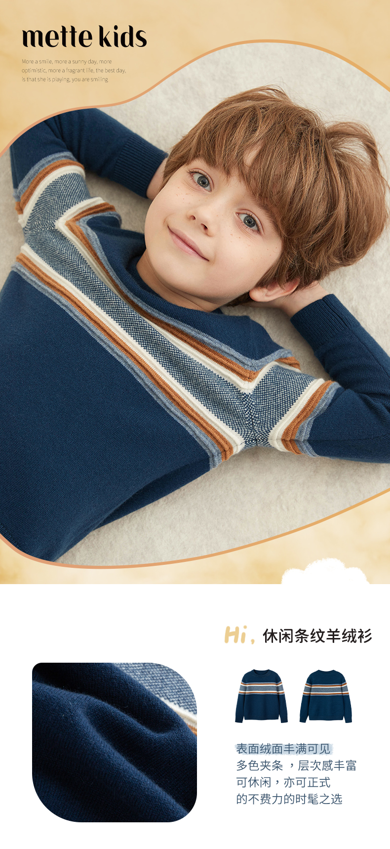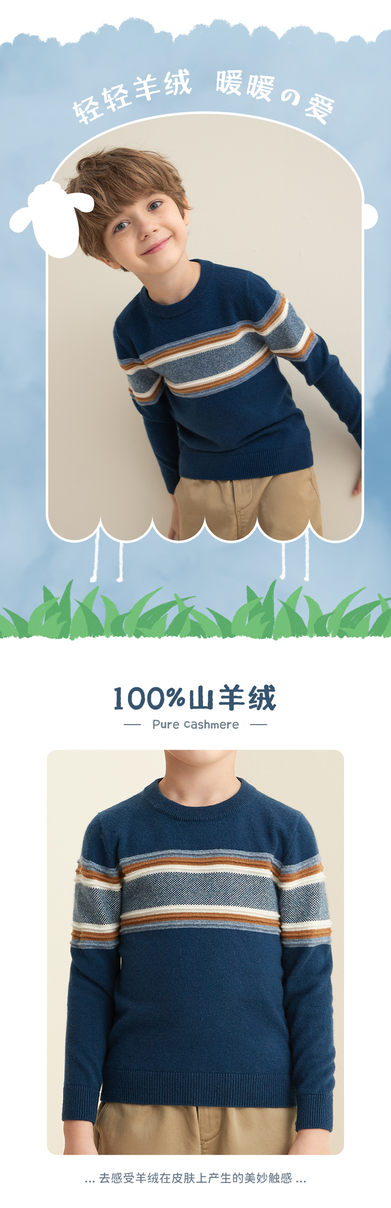 【童装羊绒衫】羊绒世家21年秋冬童装羊绒衫舒适保暖条纹针织毛衣