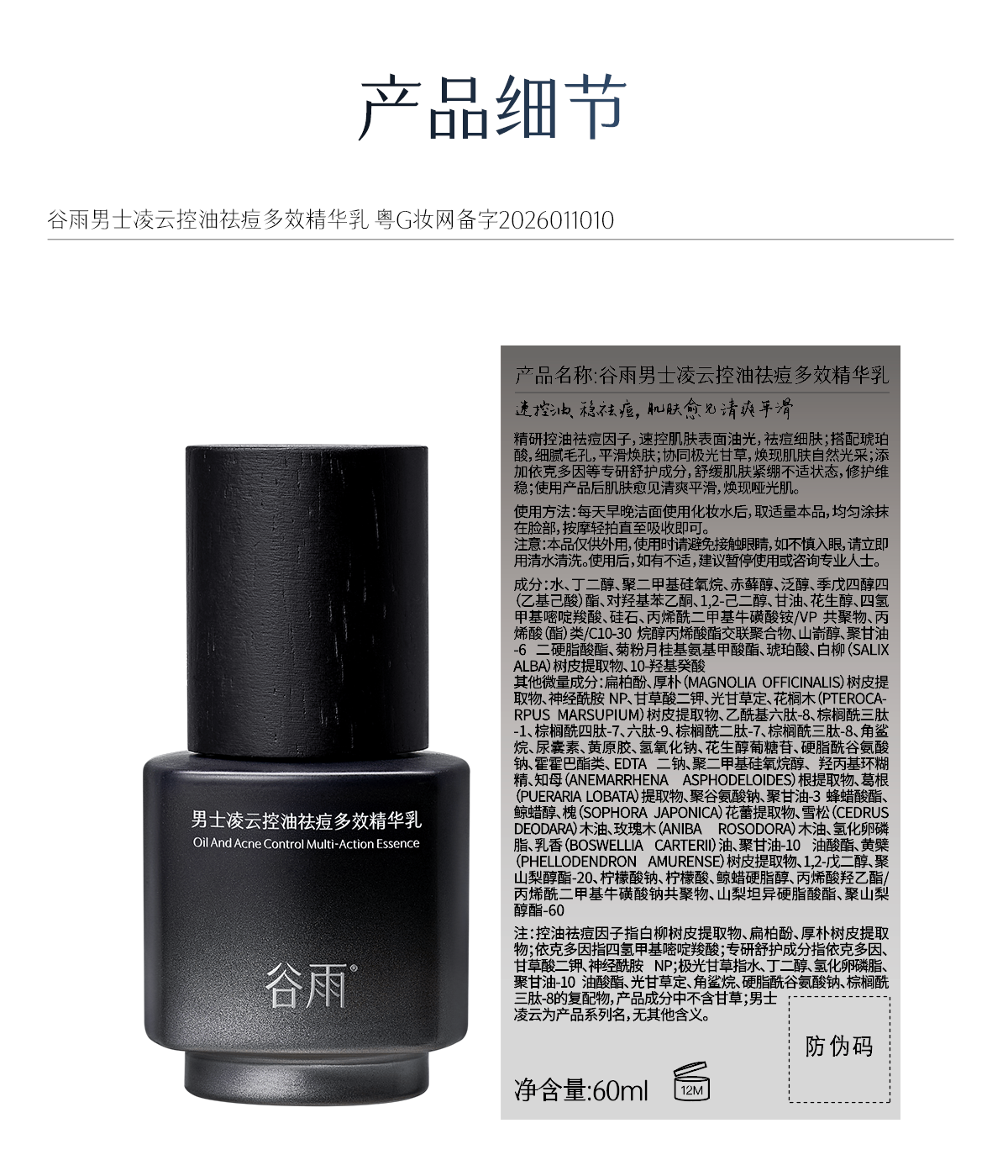 【十周年庆典】买一送一到手120ml!谷雨男士凌云控油祛痘多效精华乳
