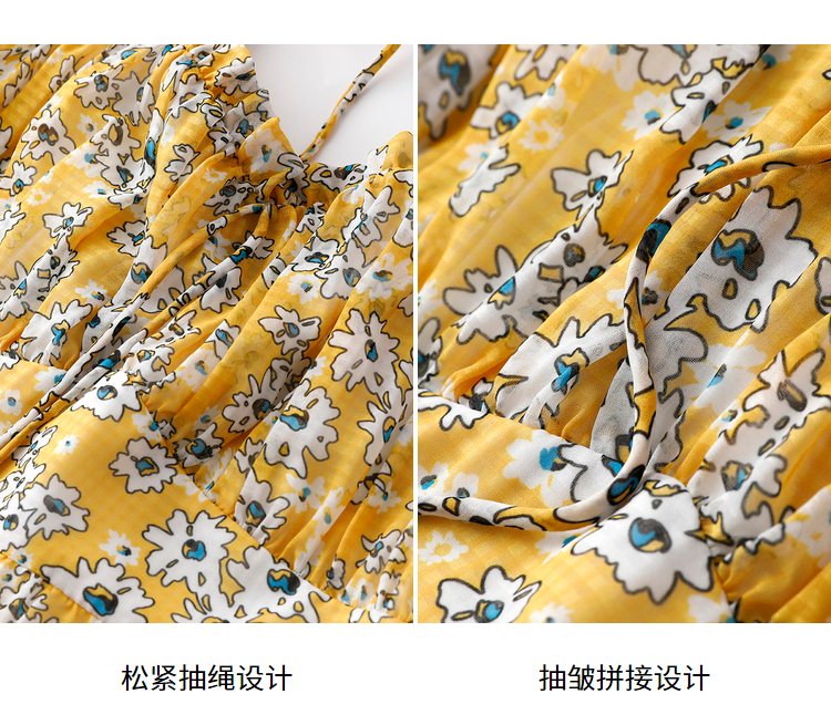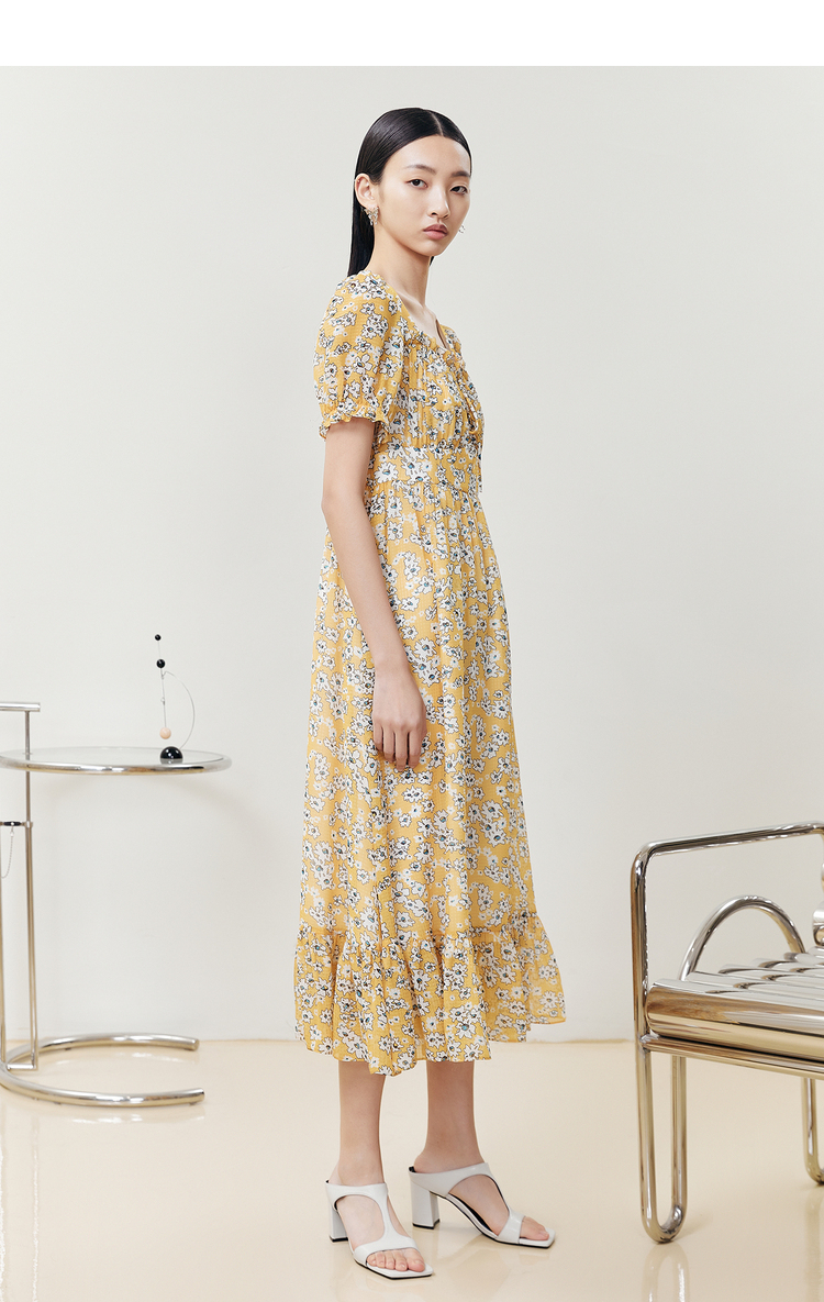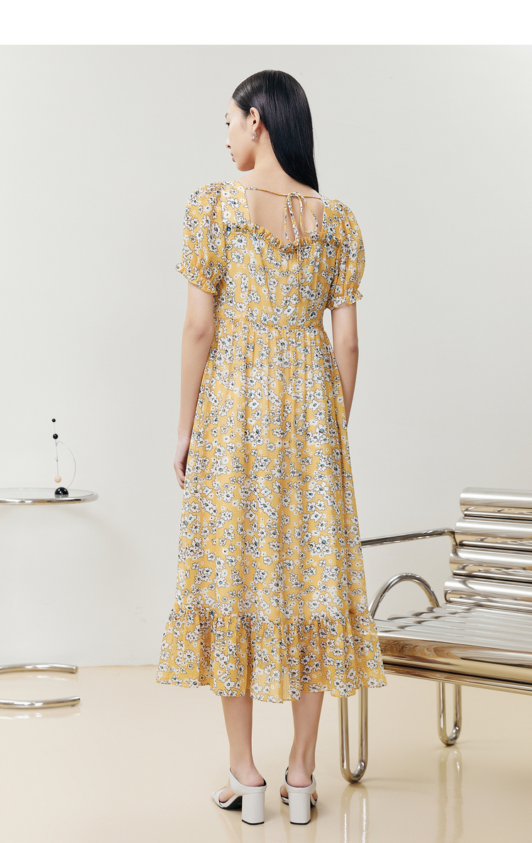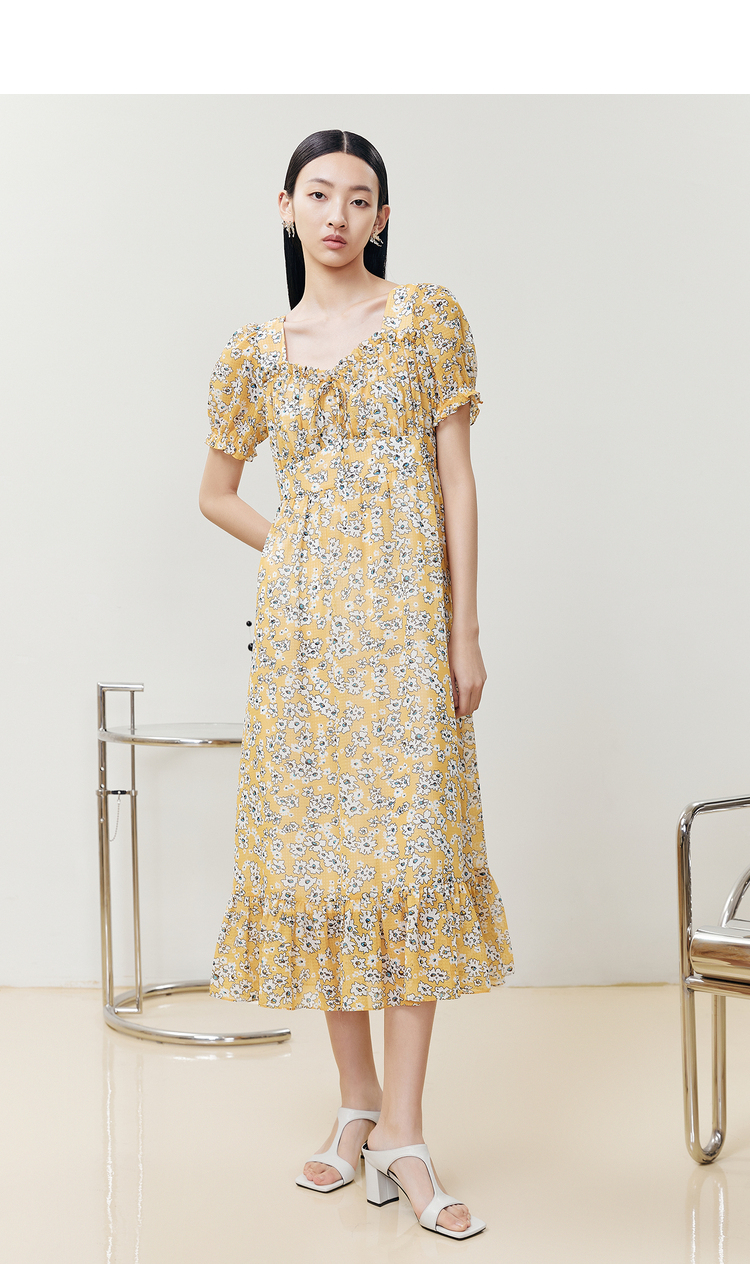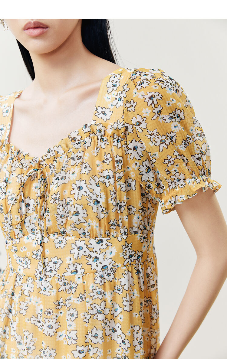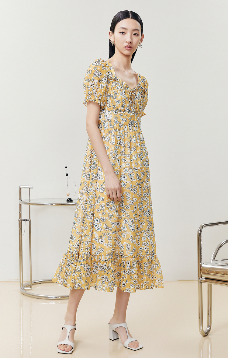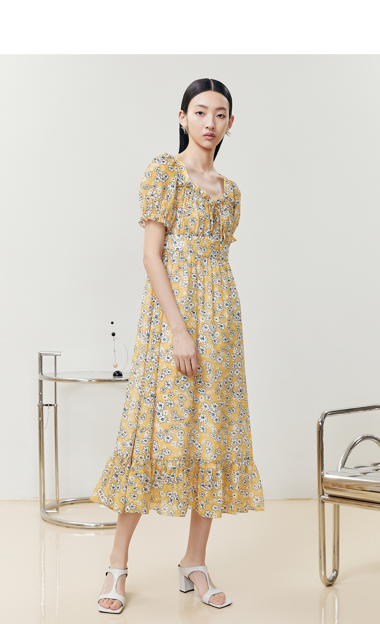 NEELLY纳俪商场同款夏季连衣裙女松紧抽绳领口气质长裙收腰大摆裙N22061Y01193