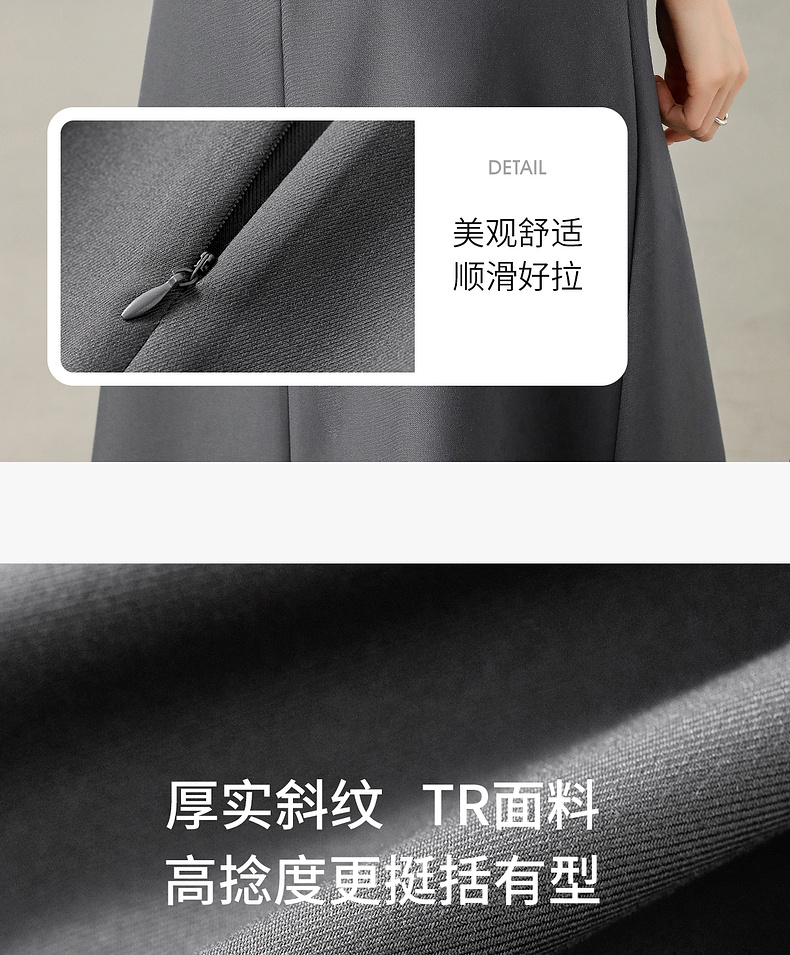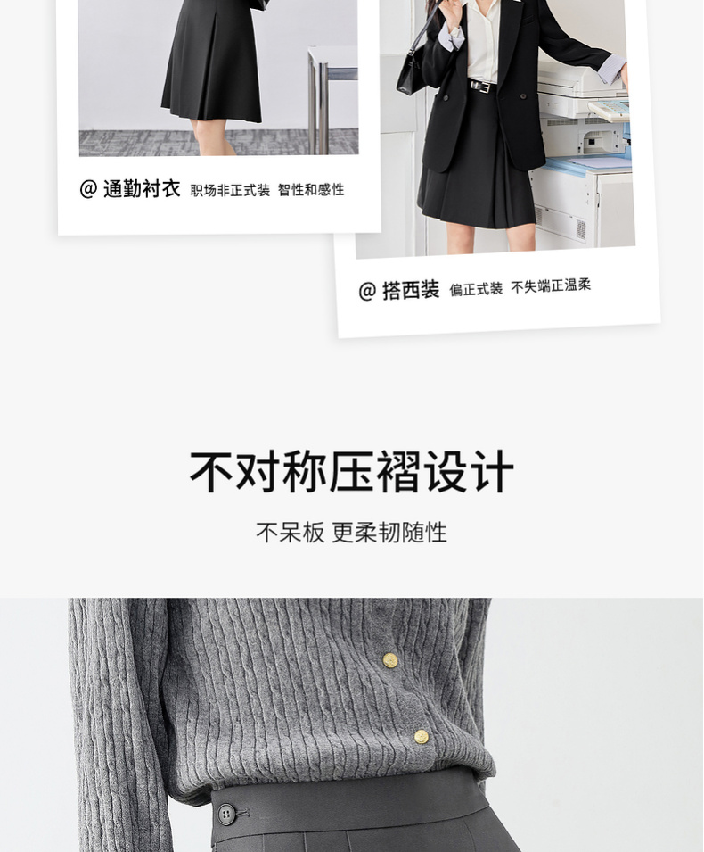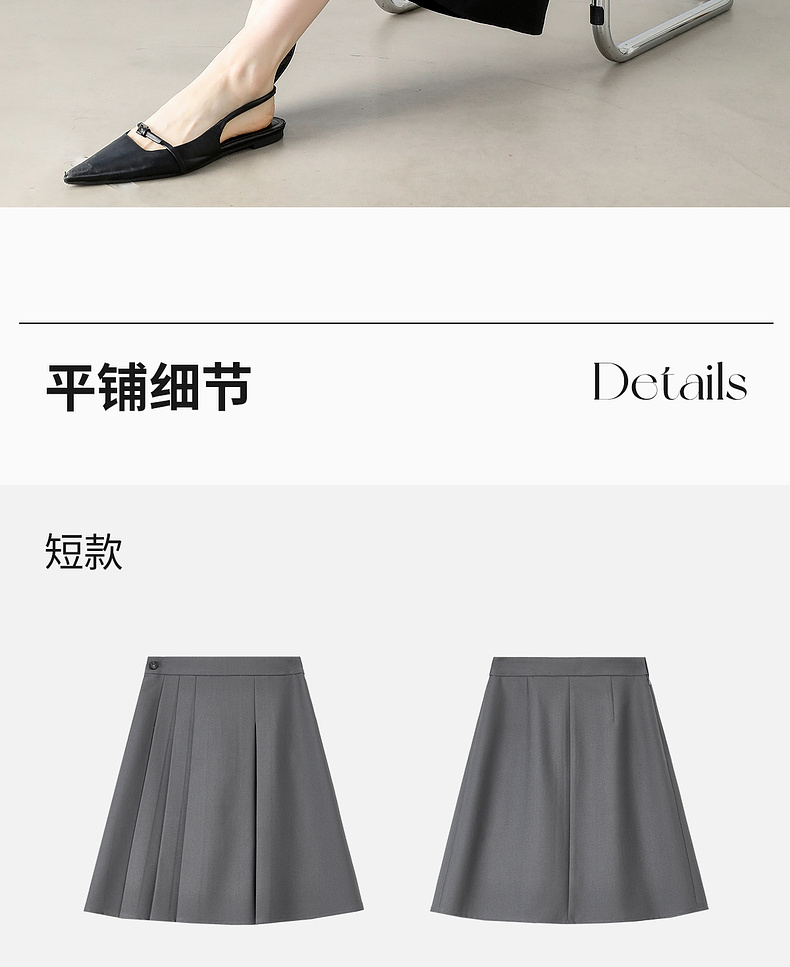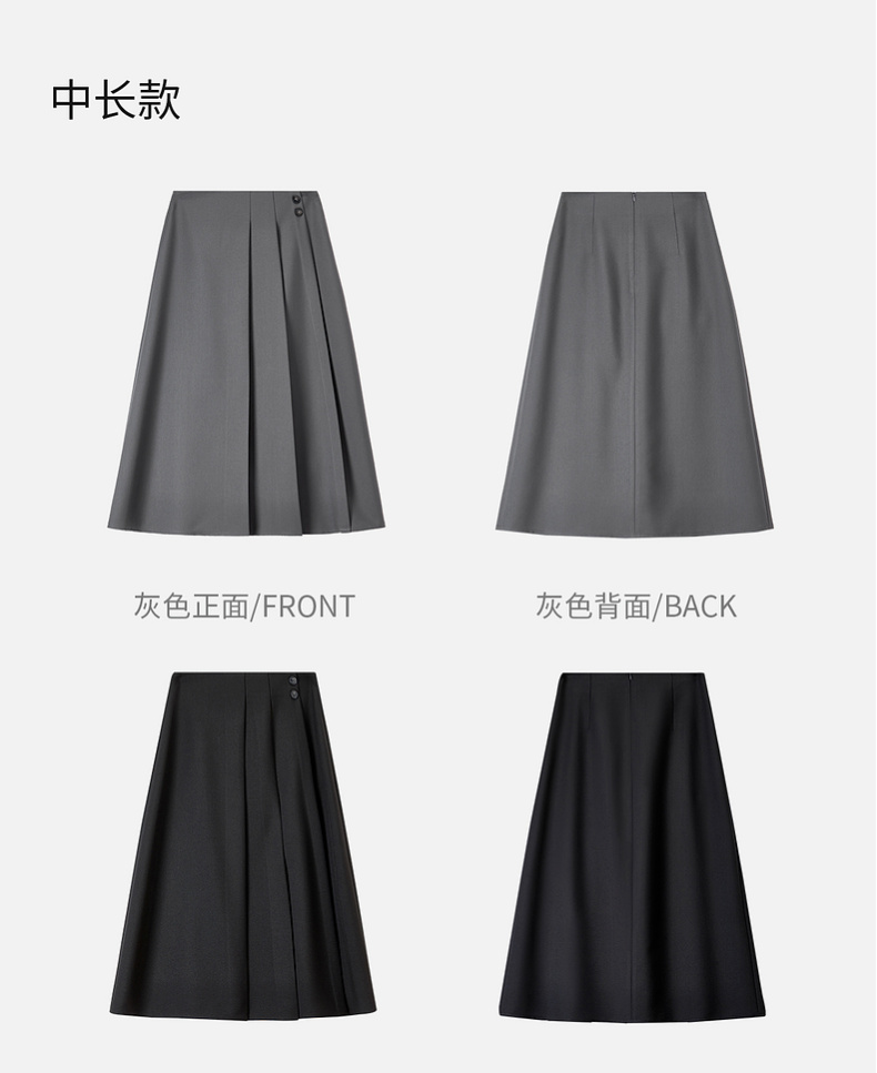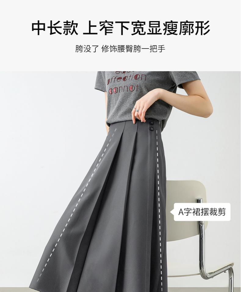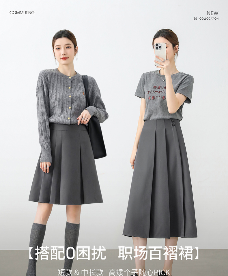 格雷系职场通勤上班高温压褶显瘦显高A字短裙&中长裙
