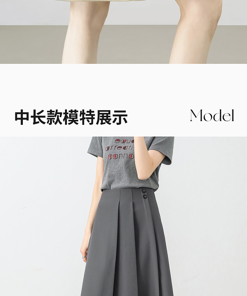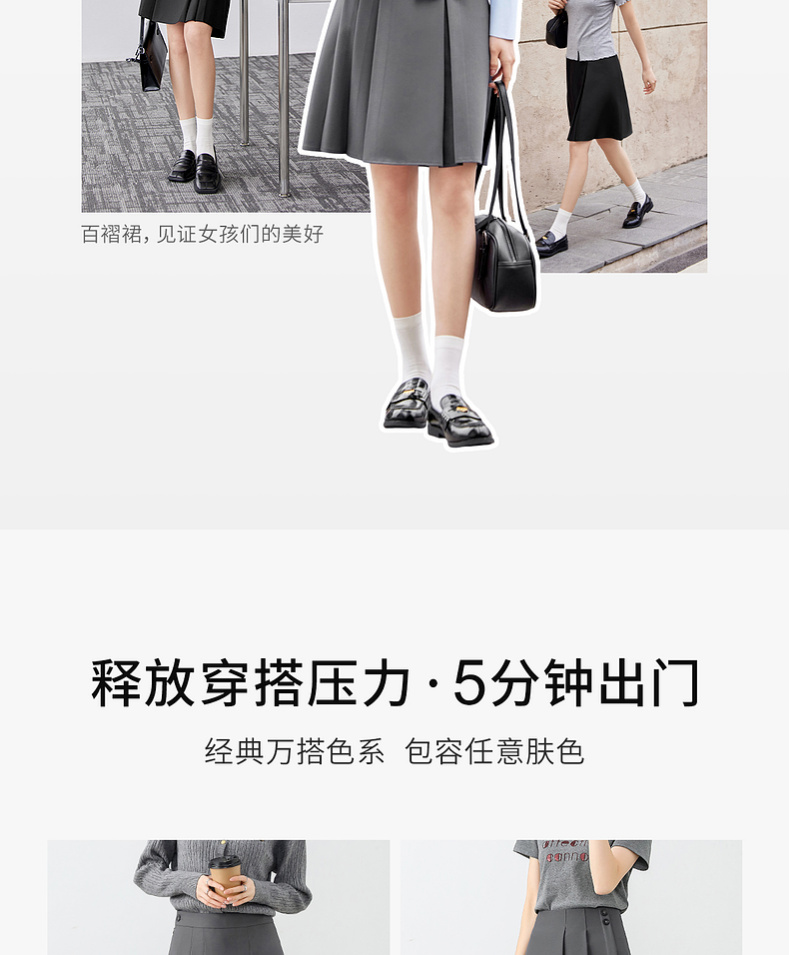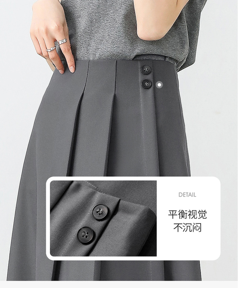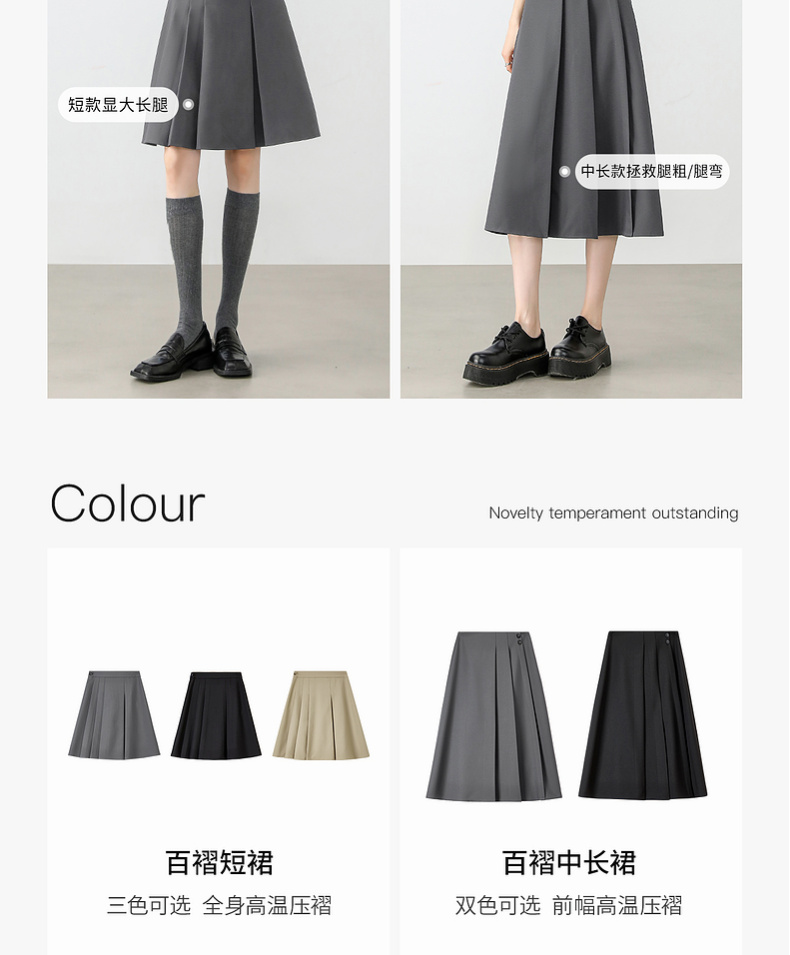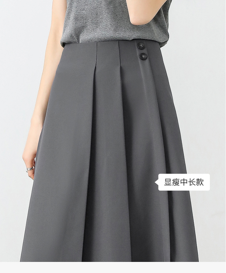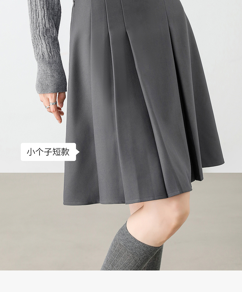 格雷系职场通勤上班高温压褶显瘦显高A字短裙&中长裙