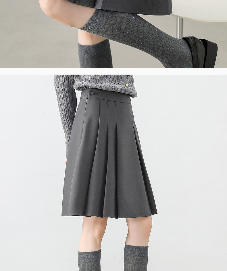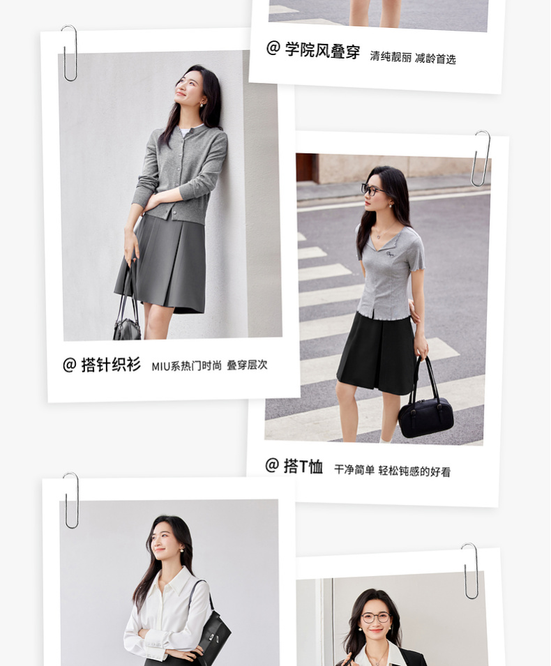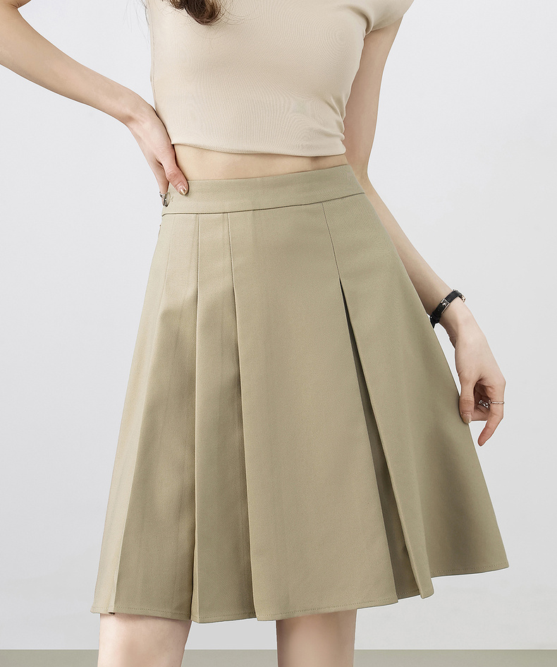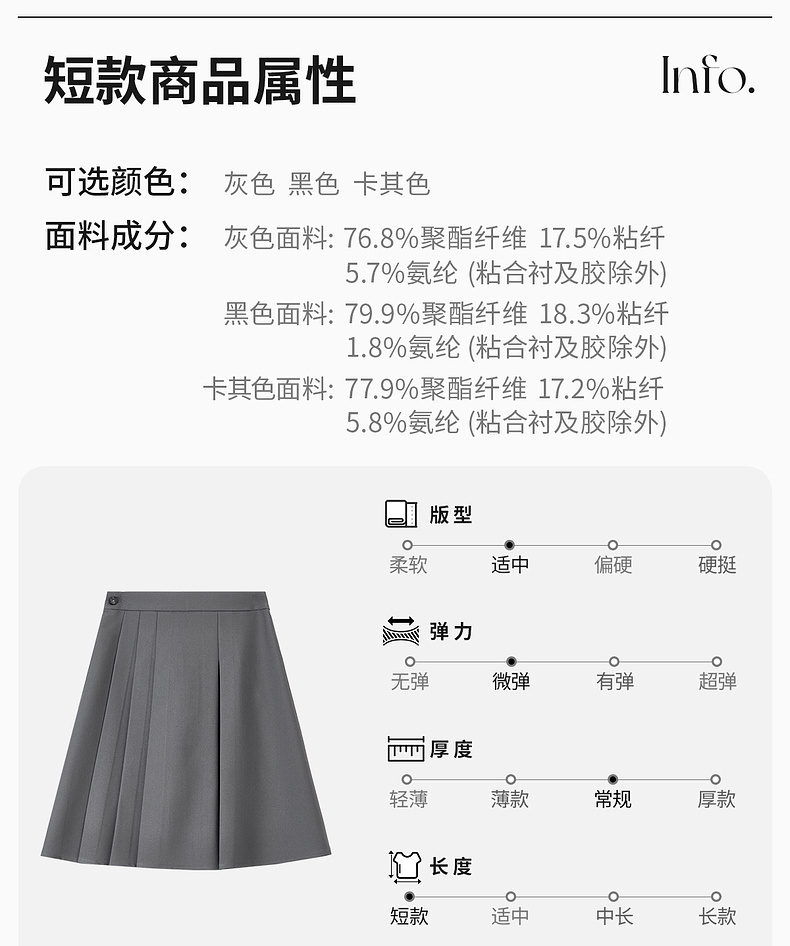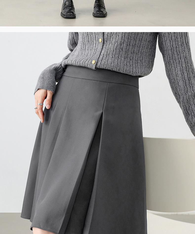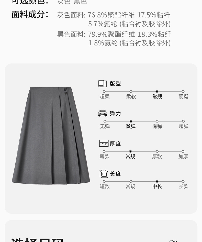 格雷系职场通勤上班高温压褶显瘦显高A字短裙&中长裙