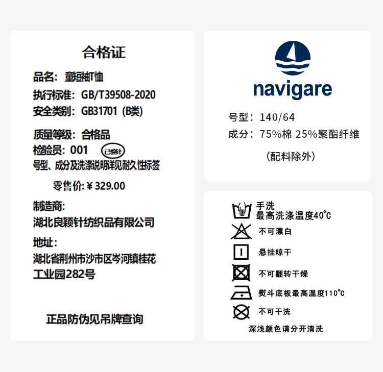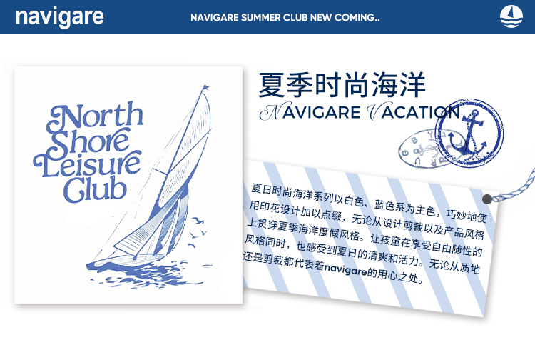【纳维凯尔】【索罗娜凉感】【120-165】Navigare意大利小帆船男童夏款短袖T恤