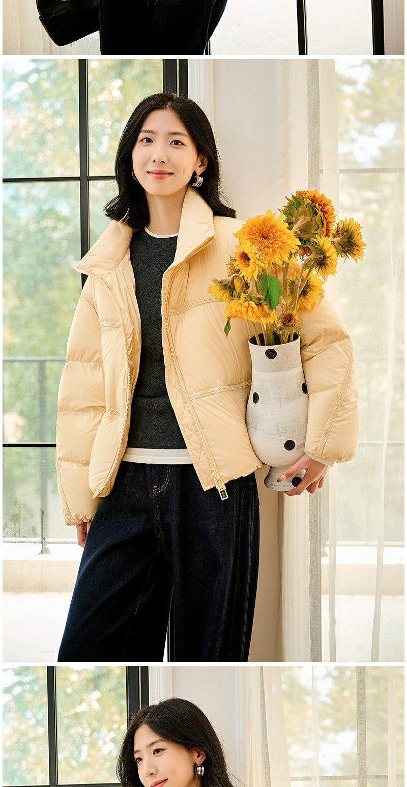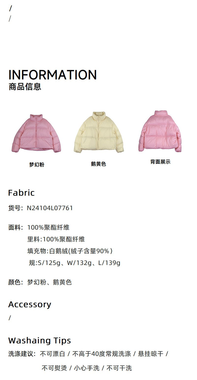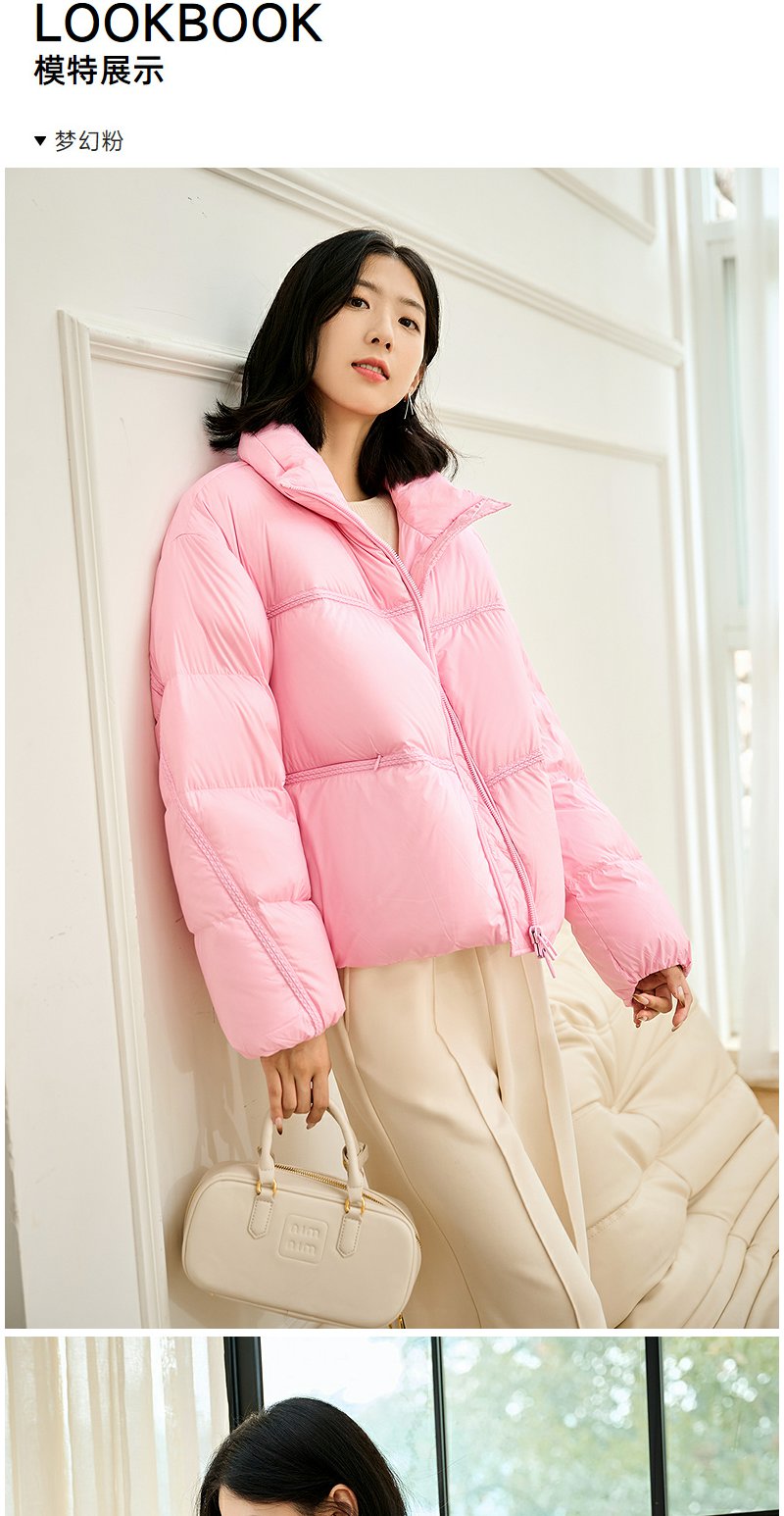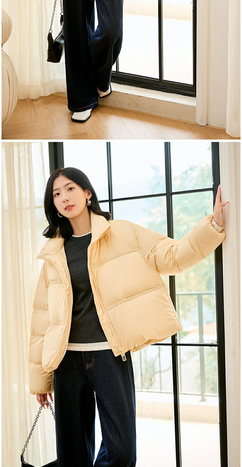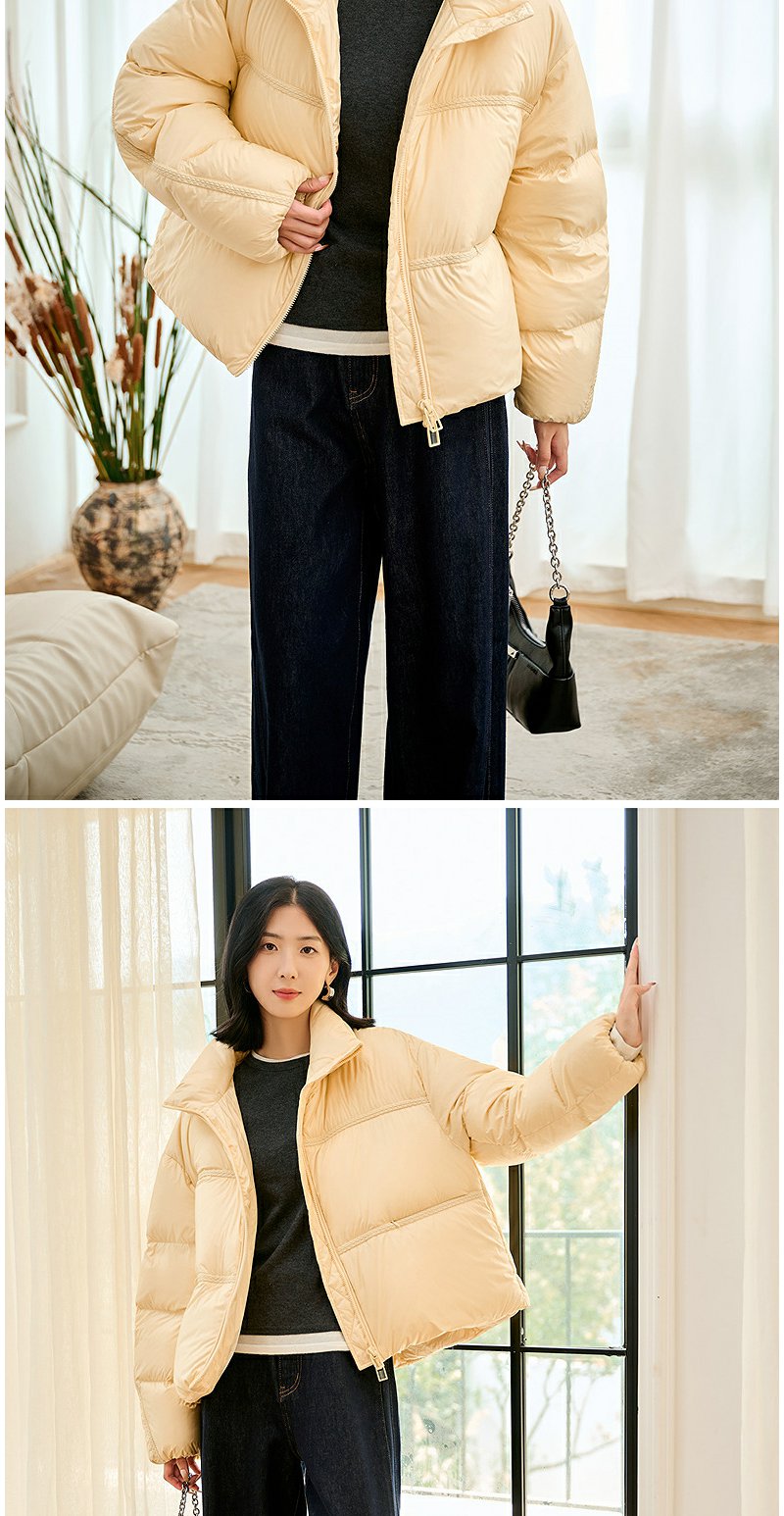 NEELLY纳俪商场同款冬季新款90白鹅绒羽绒服女宽松短款面包服外套N24104L07761