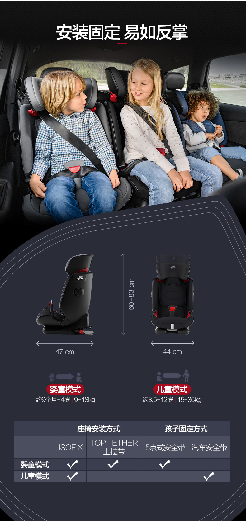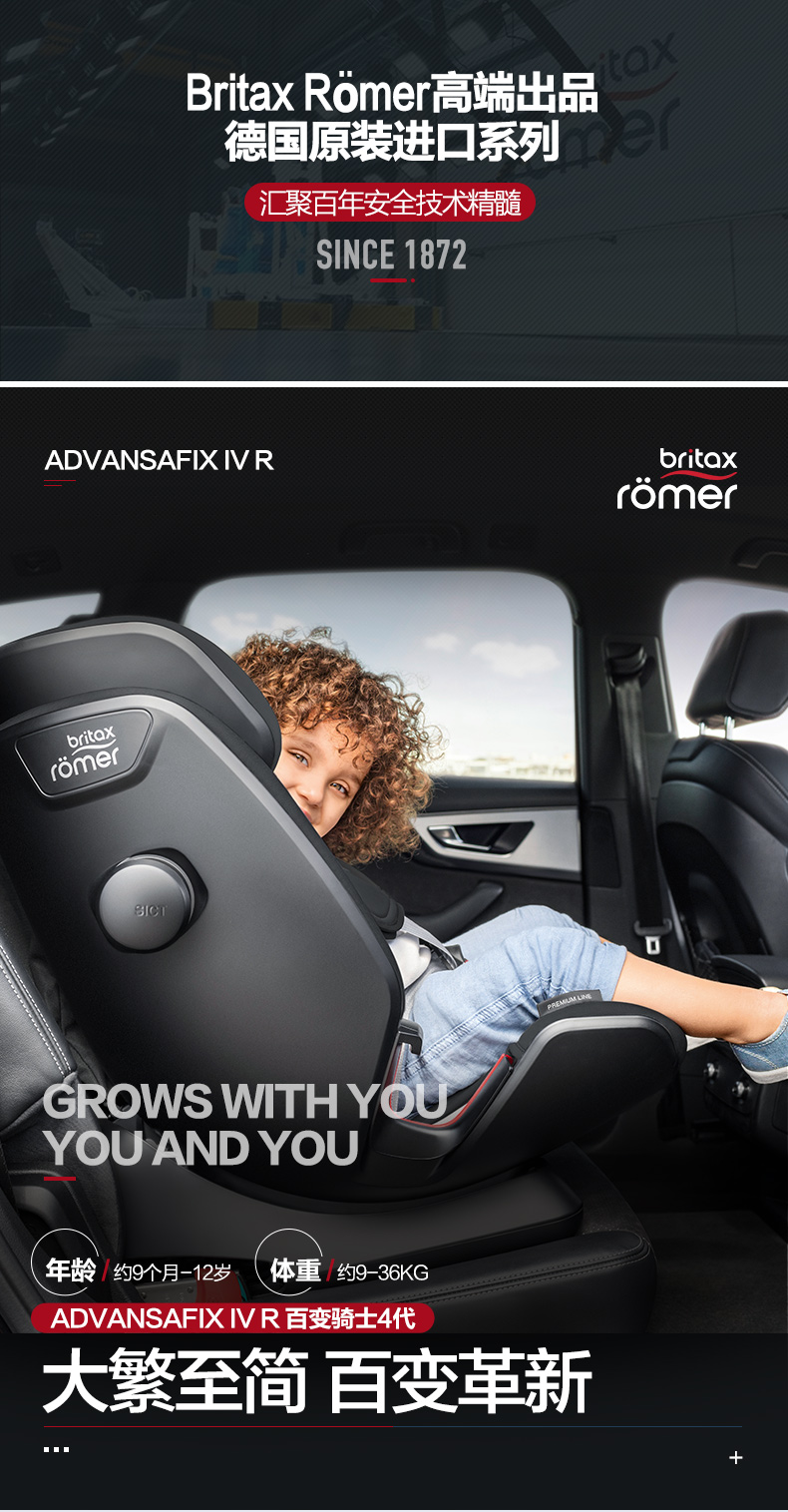 britax宝得适百变骑士4代安全座椅汽车用isofix9月-12岁德国进口