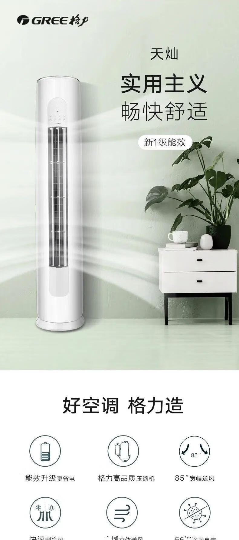 【格力】空调_新能效一级能效 变频冷暖 自清洁 客厅圆柱空调立式柜机 2匹 一级能效 天灿_KFR-50LW/(50504)FNhAc-B1【佛山】