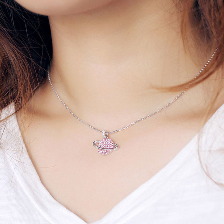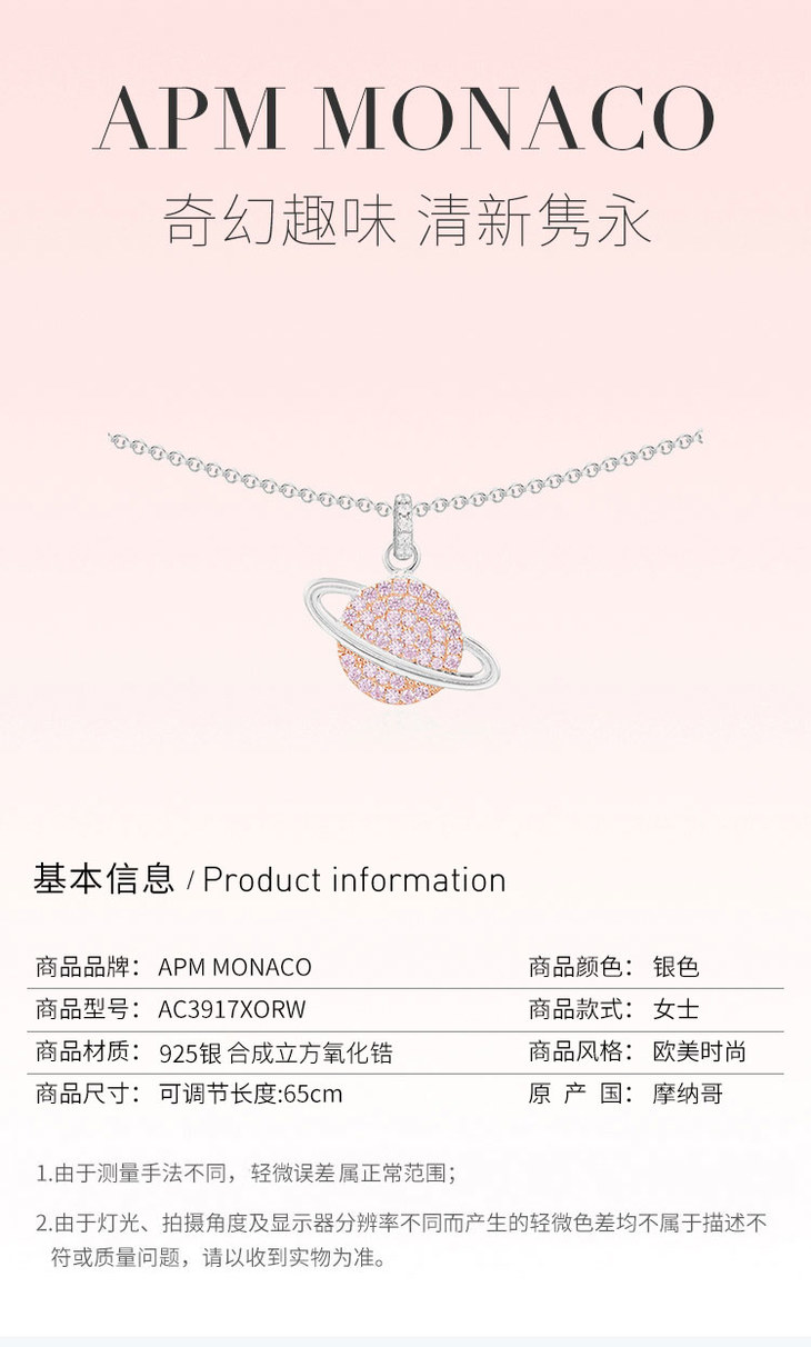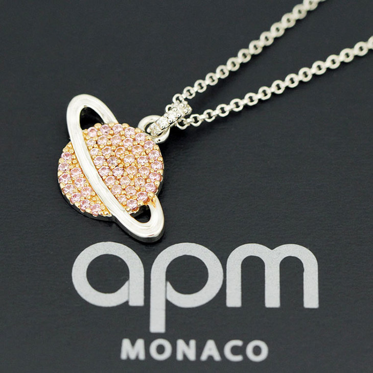 【授权商品】APM Monaco纯银镶晶钻粉色星球项链AC3917XORW