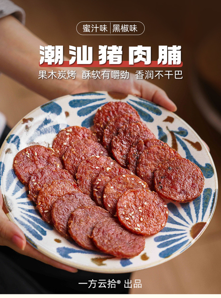 一方云拾潮汕炭烧猪肉脯 果木炭烤 酥软有嚼劲 香润不干巴 独立小包装美味随心分享 蜜汁味/黑椒味 60g/袋