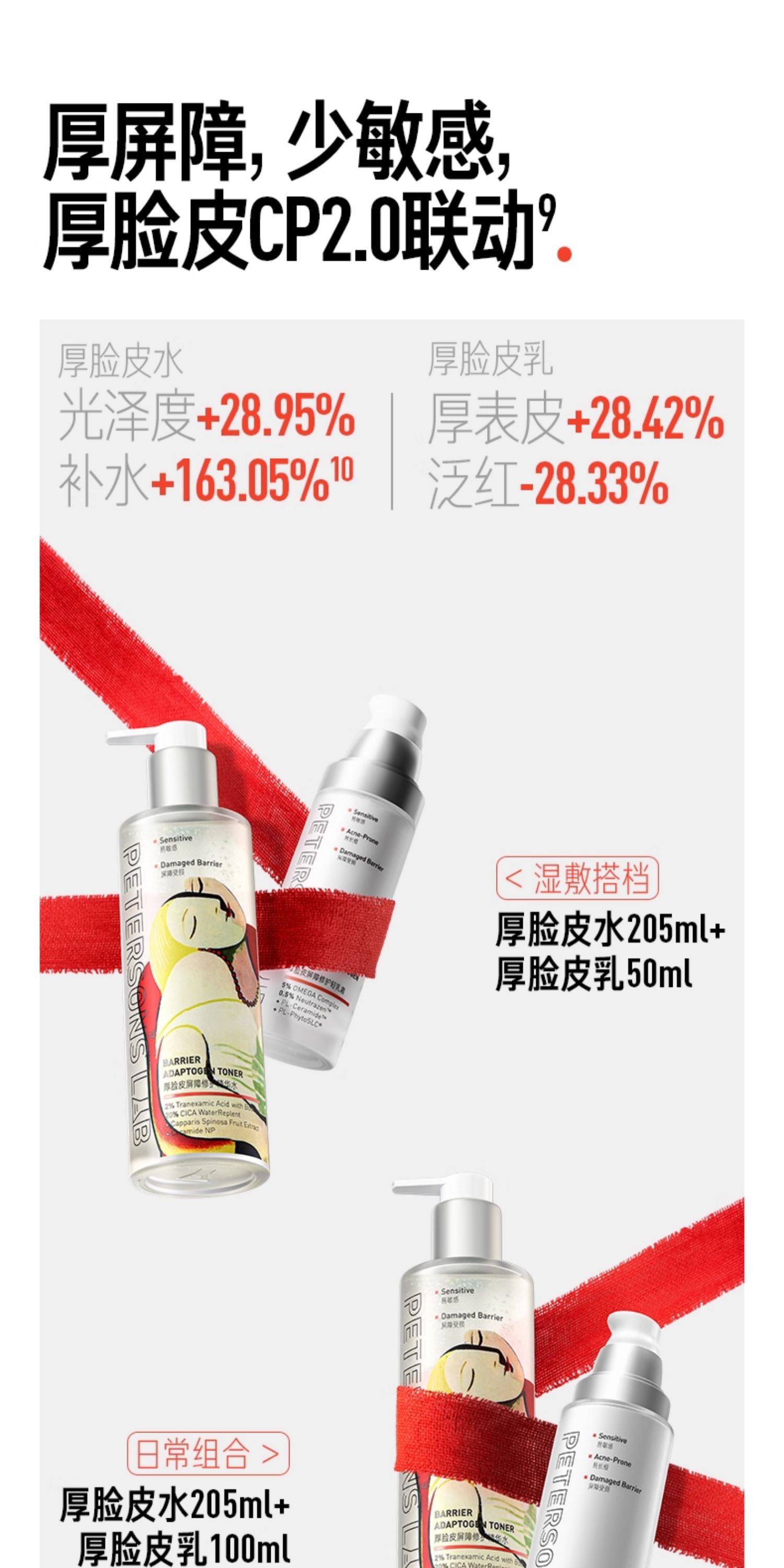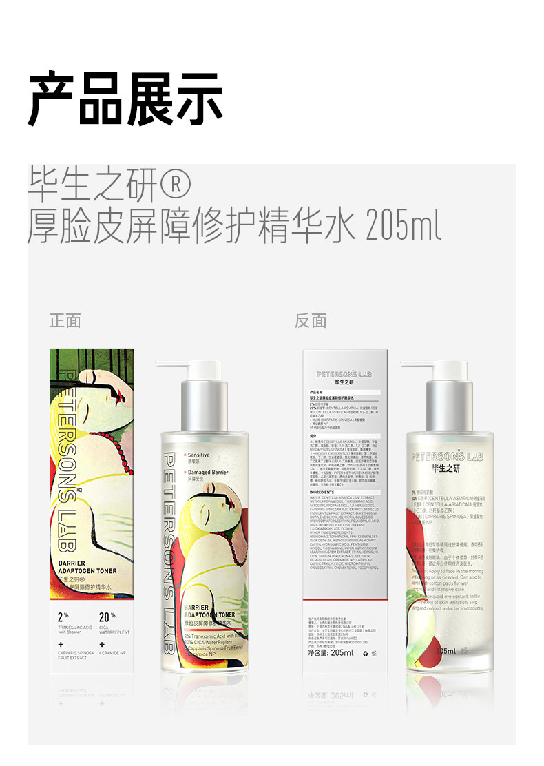 [papi酱推荐]Peterson's Lab/毕生之研厚脸皮水修护精华水乳 保湿褪红湿敷护肤爽肤水