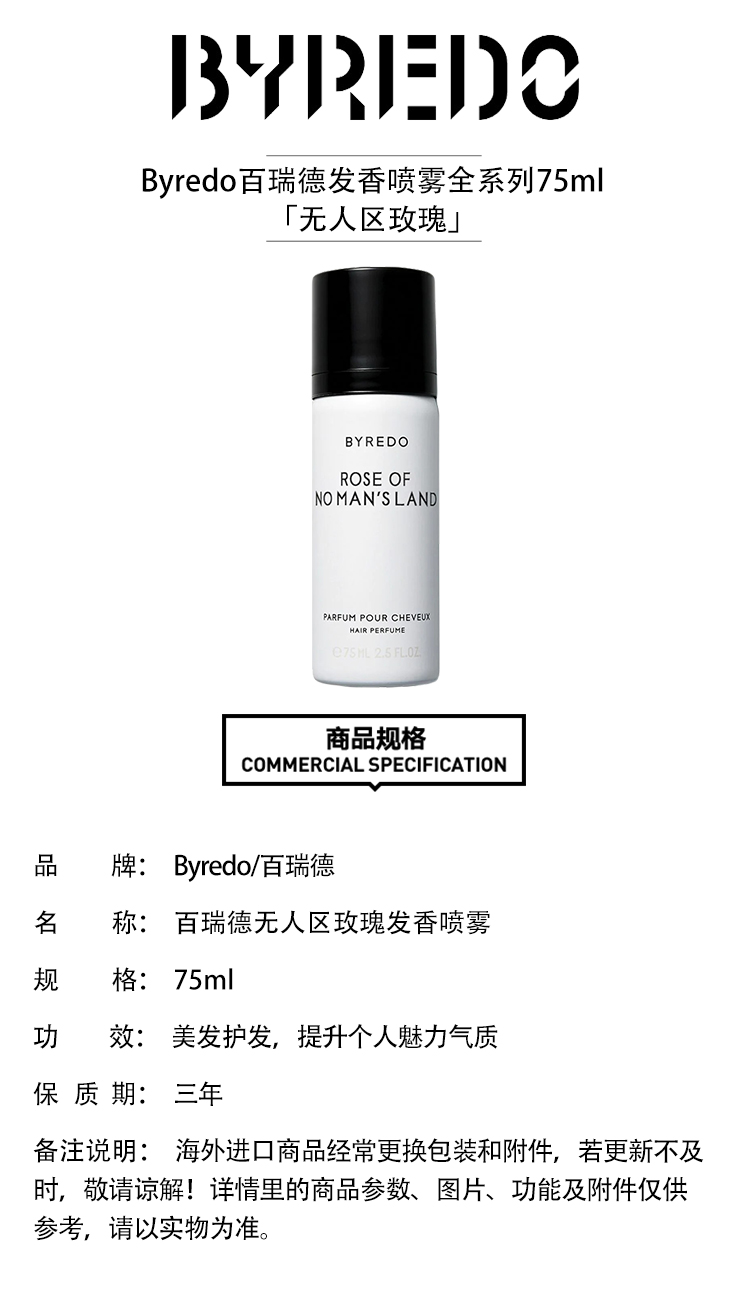 Byredo/百瑞德 发香喷雾75ml「ROSE-无人区玫瑰」