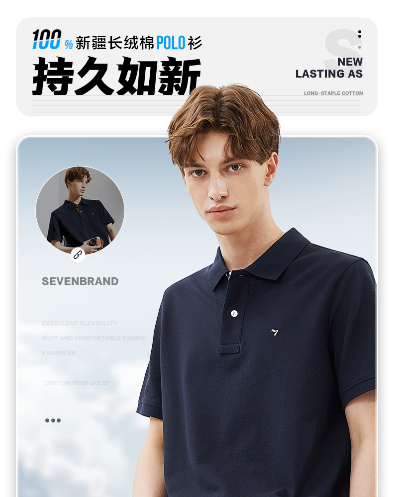 【持久如新】柒牌男士短袖POLO衫夏季新款长绒棉透气翻领T恤 124T71100