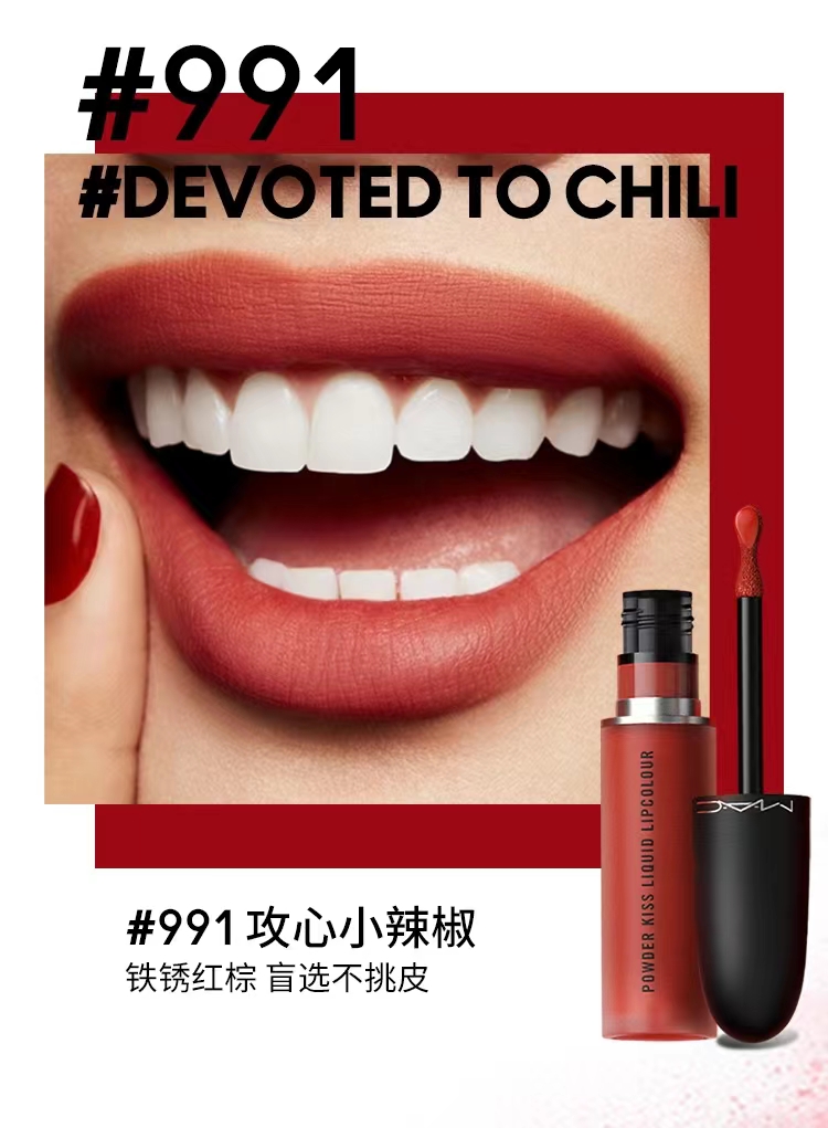 MAC魅可柔雾弹唇釉雾面哑光唇彩#991 攻心小辣椒