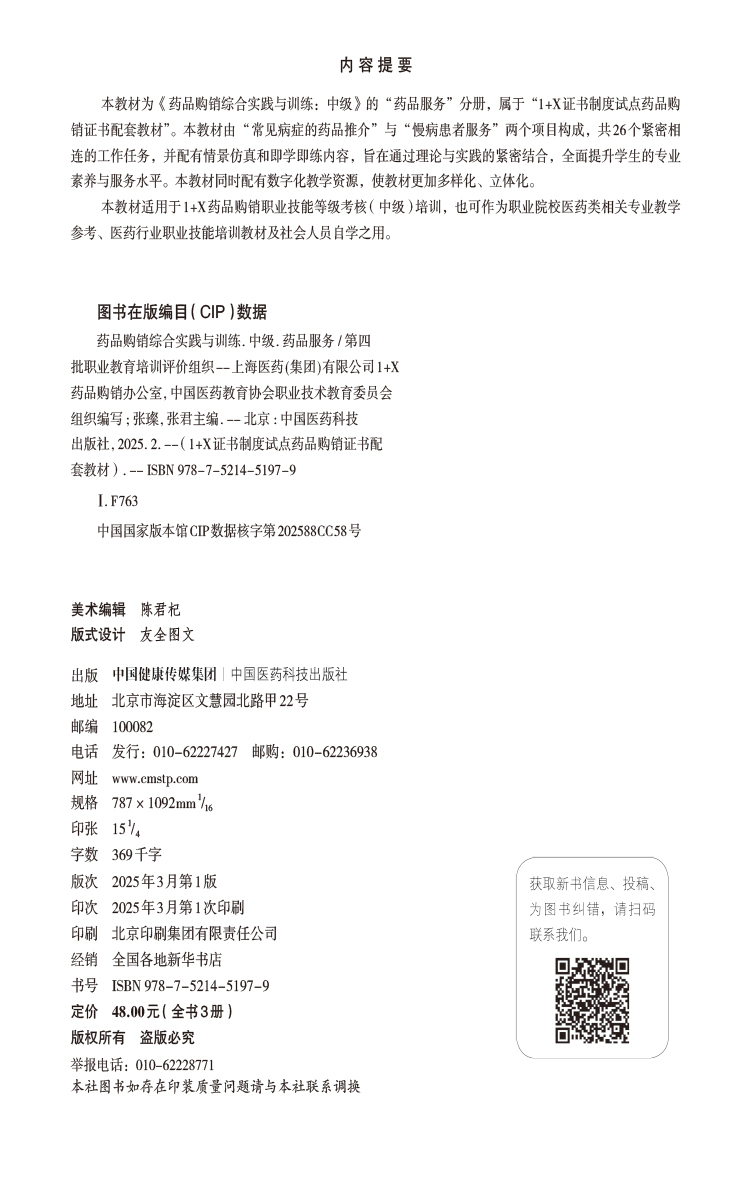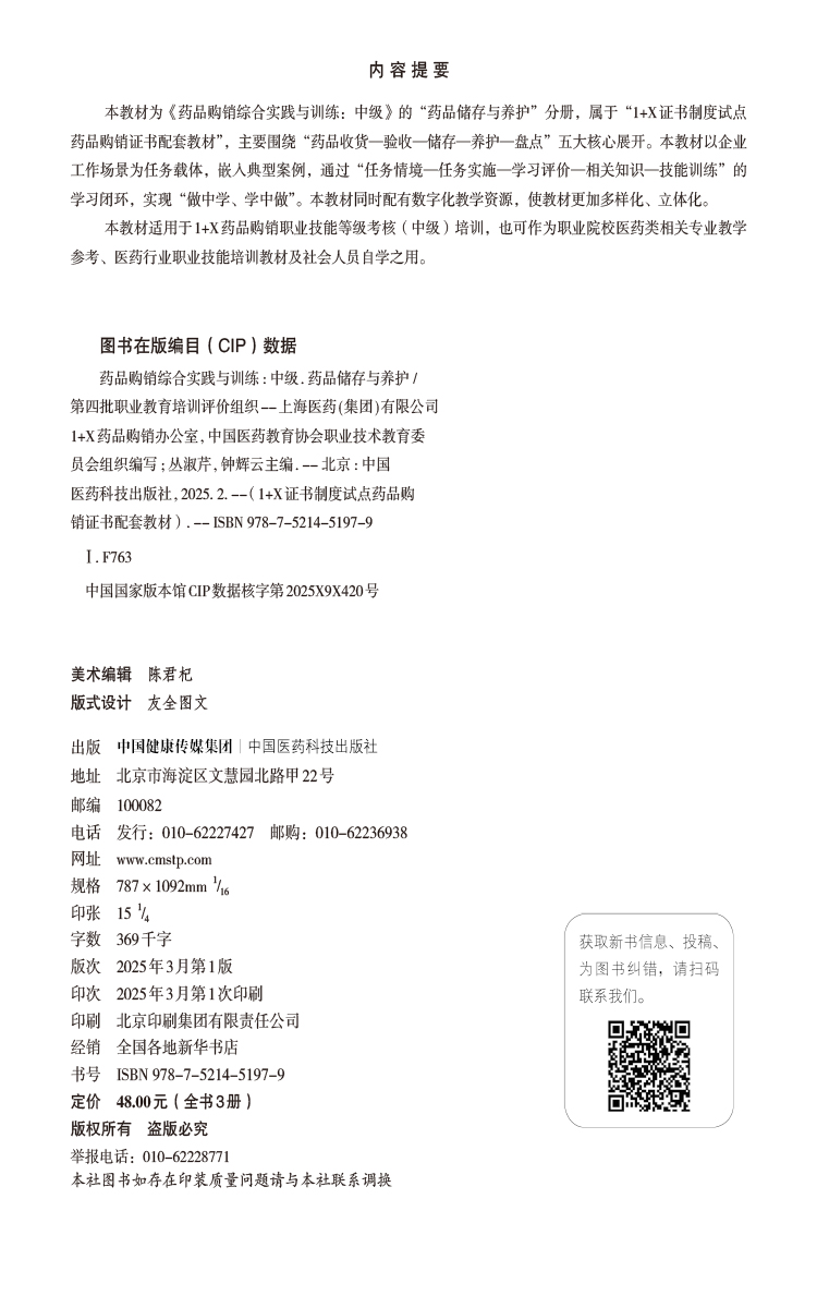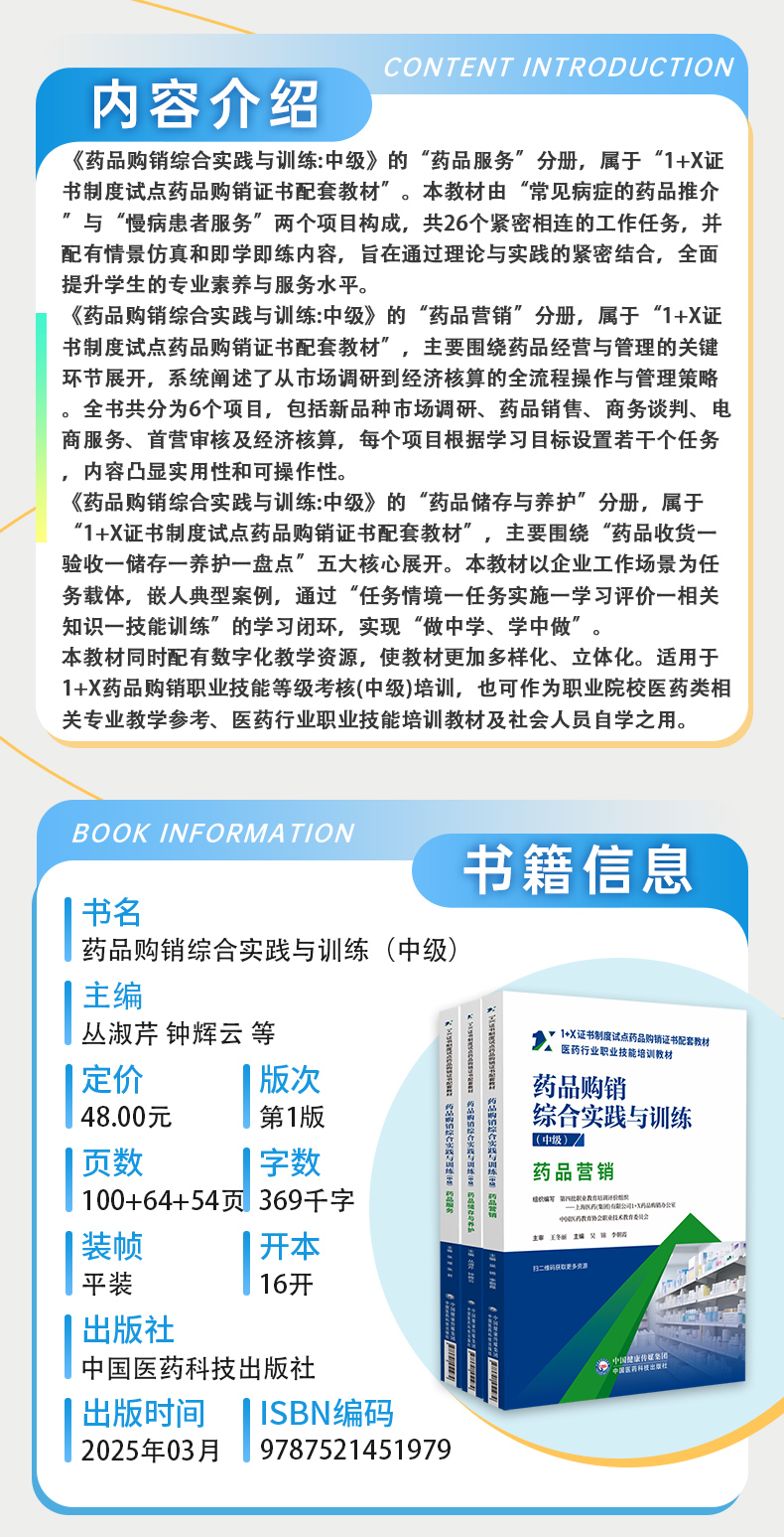 书名:全书3册 药品购销综合实践与训练(中级)药品服务+药品营销+药品储存养护(1+X证书制度试点药品购销证书配套教材)