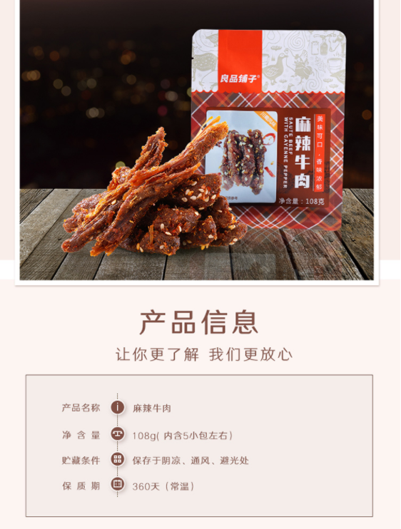 良品铺子 麻辣牛肉牛肉干四川特产网红零食即食牛肉麻辣味108g