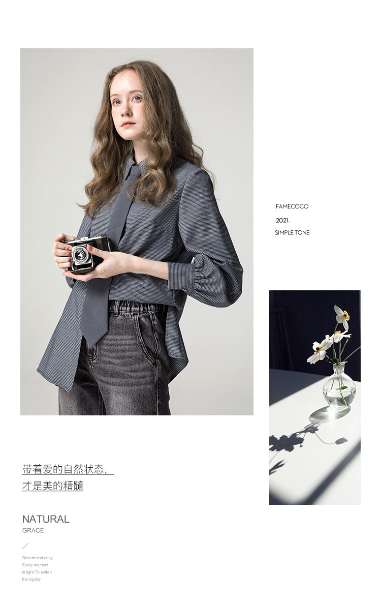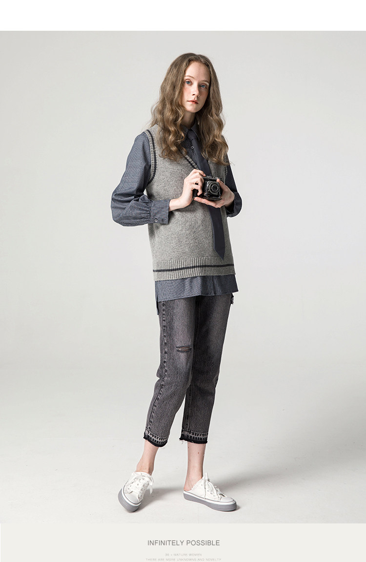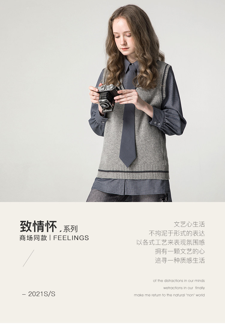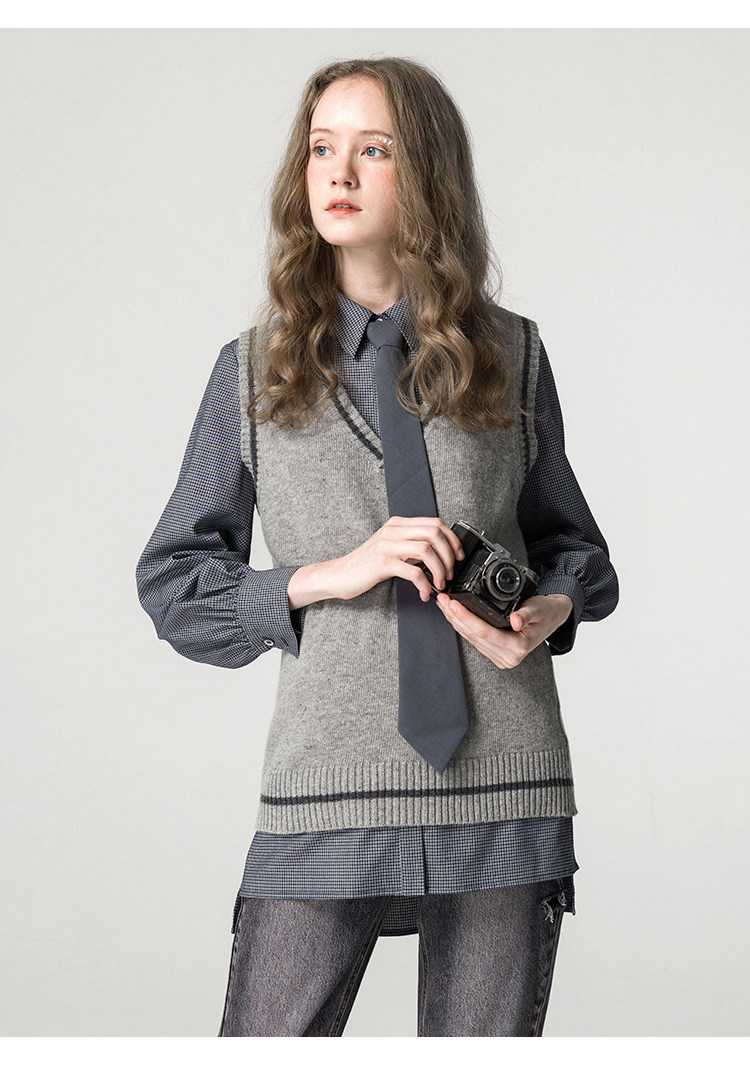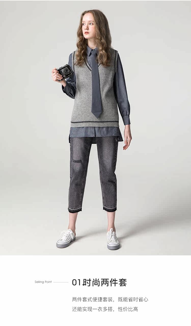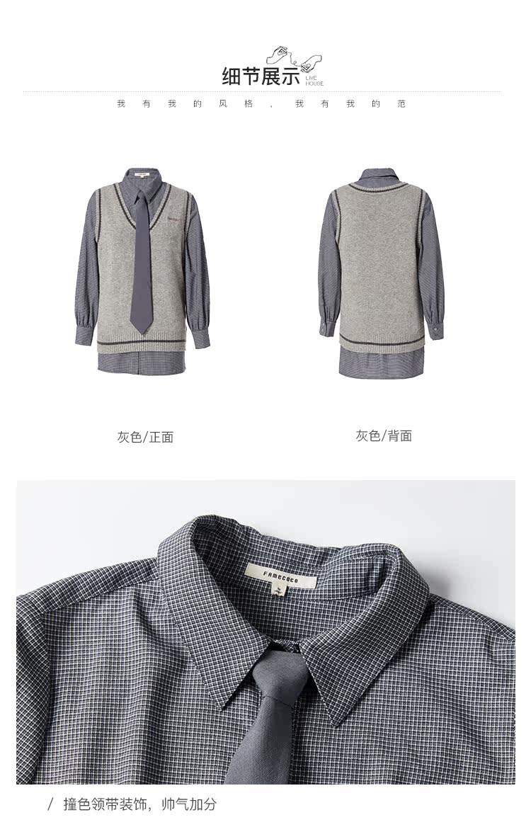 famecoco范可儿学院风套装衬衫马甲两件套F211EC002