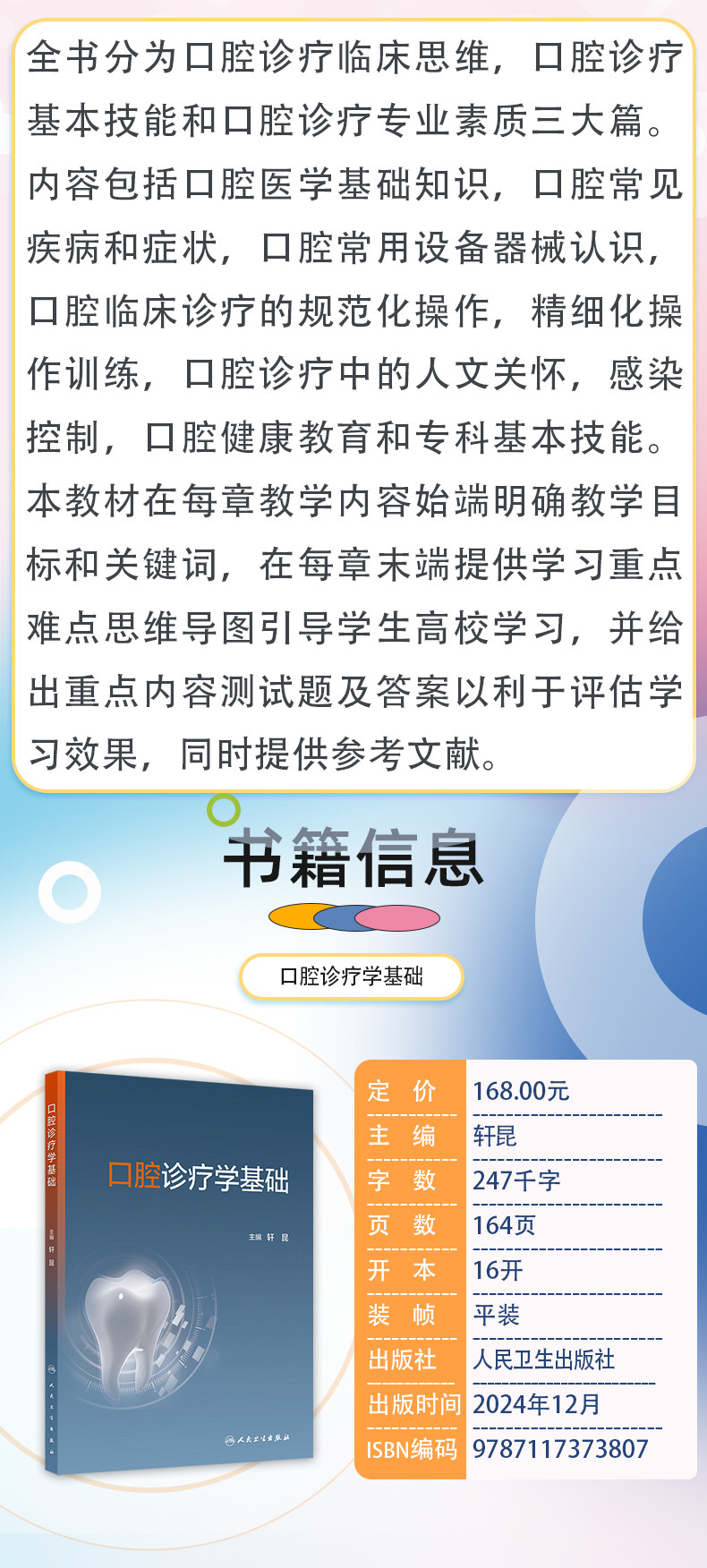 口腔诊疗学基础 轩昆主编 内容包括口腔医学基础知识 口腔常见疾病和症状 口腔常用设备器械认识等 9787117373807人民卫生出版社