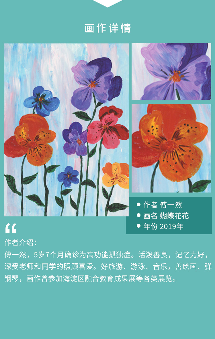 装饰画 《蝴蝶花花》傅一然 金羽翼残障小艺术家手绘作品 复制画/原画