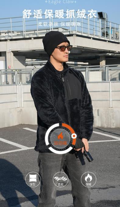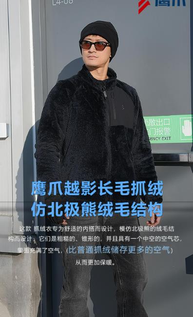 鹰爪越影单面毛猴保暖中间层外穿内搭抓绒衣