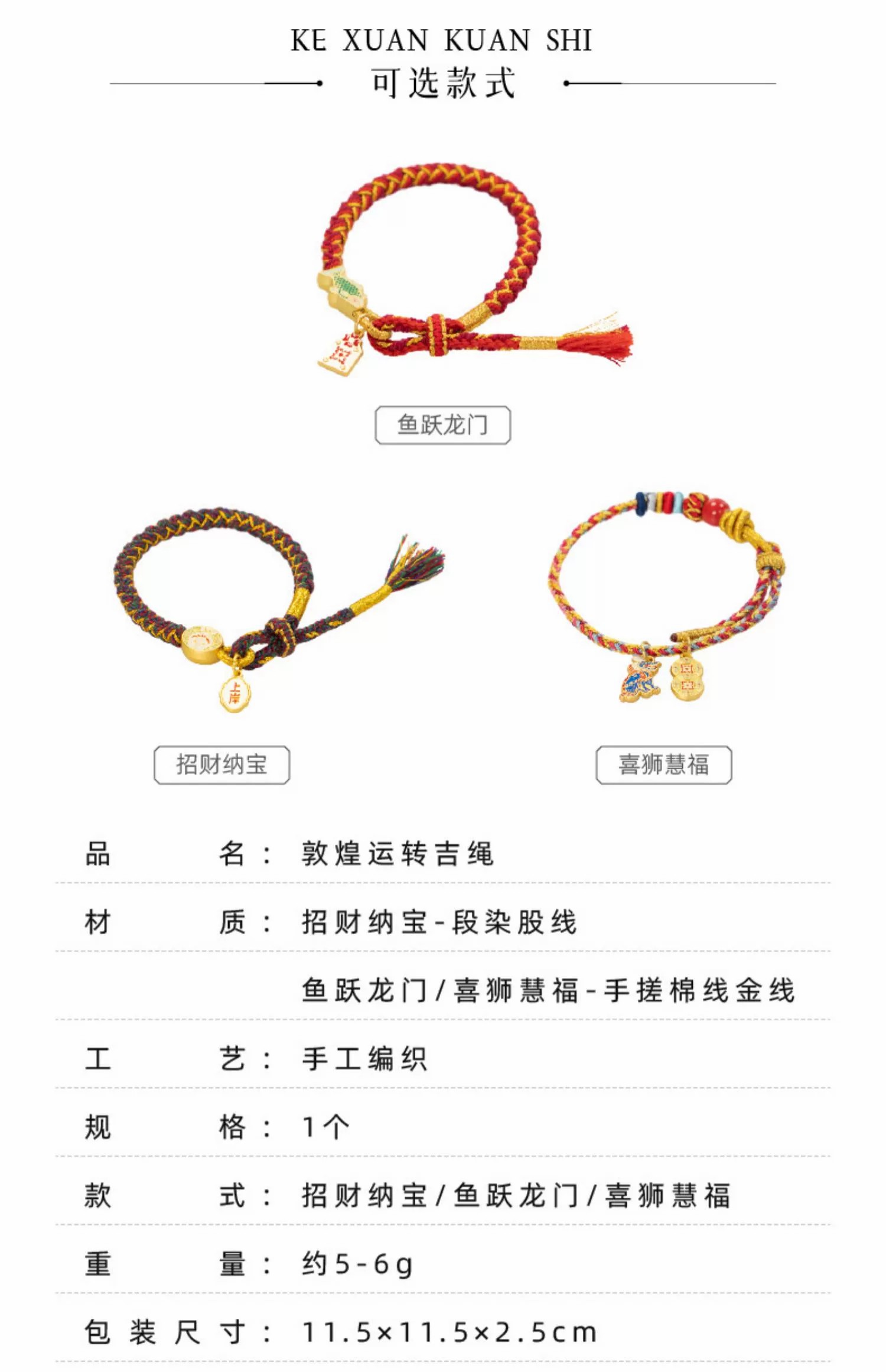 敦煌研究院 敦煌运转吉绳 龙年本命年编织手绳 博物院文创礼品