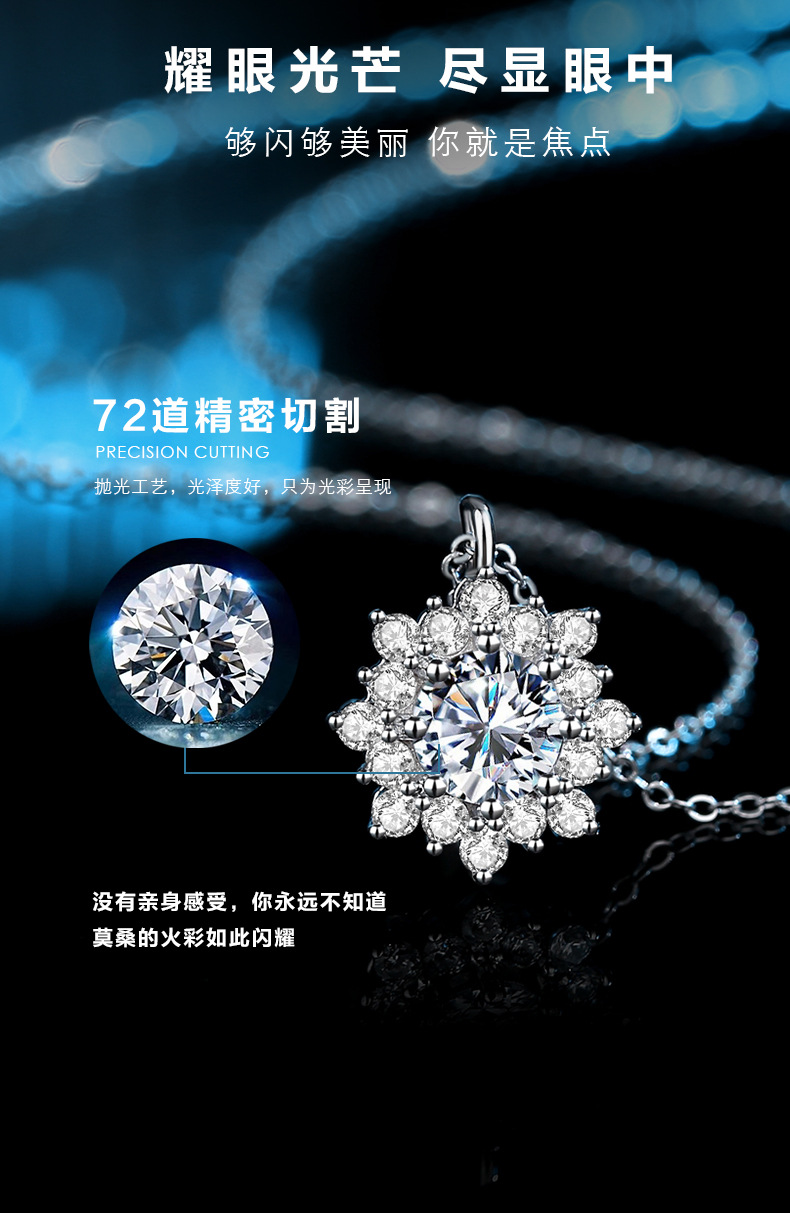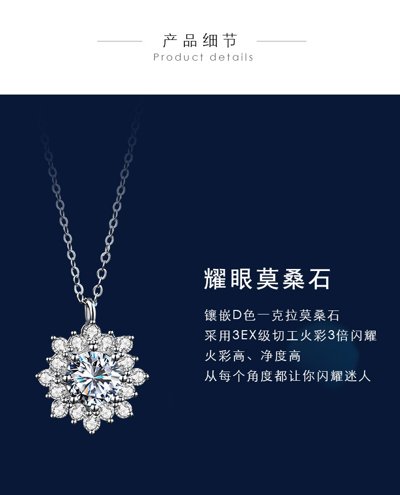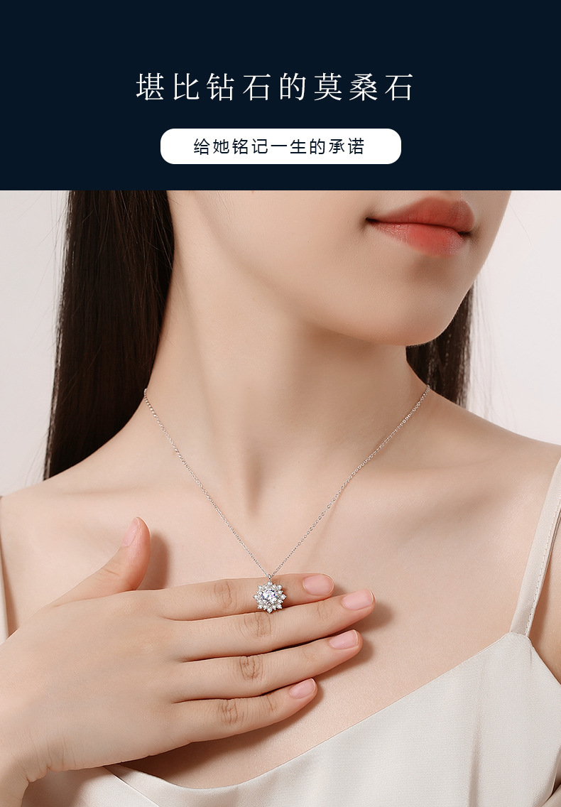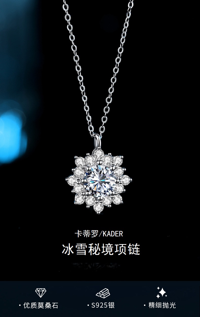 卡蒂罗/KADER 【爆闪莫桑钻 配证书】冰雪秘境项链 在逃公主圣诞雪花造型设计吊坠 满镶锆石璀璨闪耀锁骨链