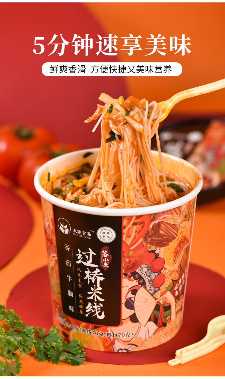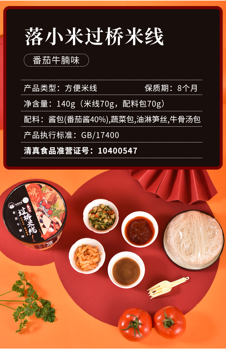 落小米过桥米线140g*6桶整箱(番茄牛腩/香菇炖鸡/香辣牛肉三种口味可选)【落小米】