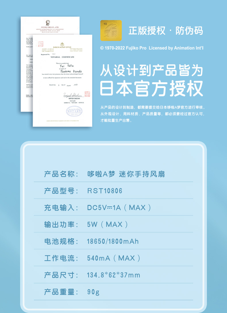 ROCK/洛克 哆啦A梦 迷你手持风扇