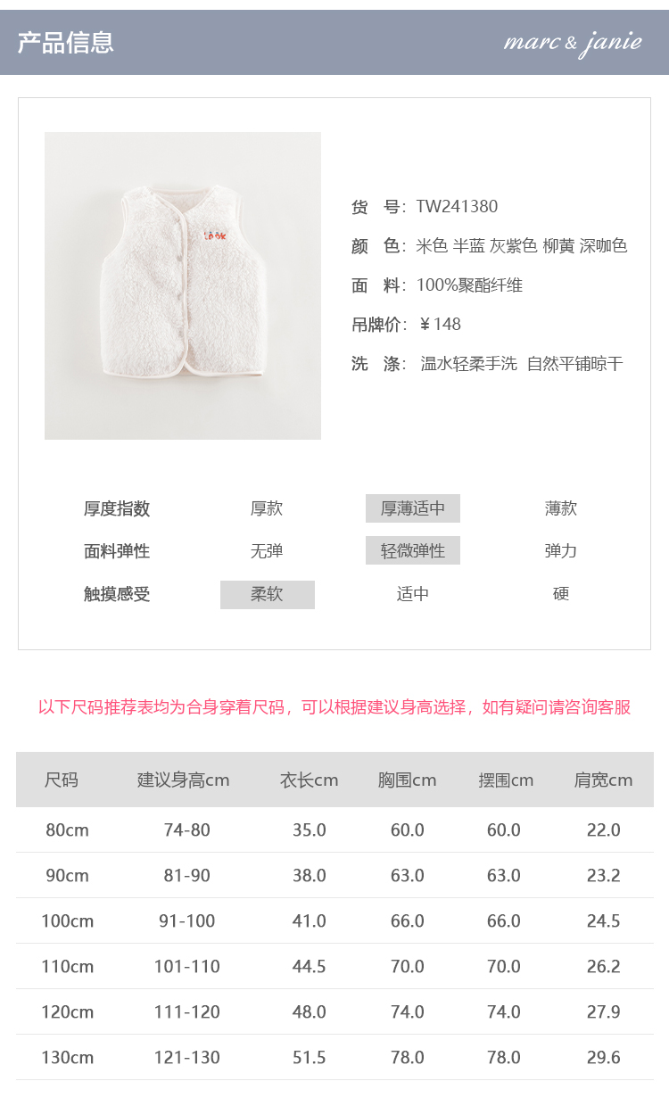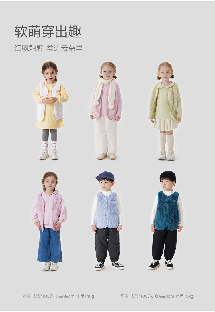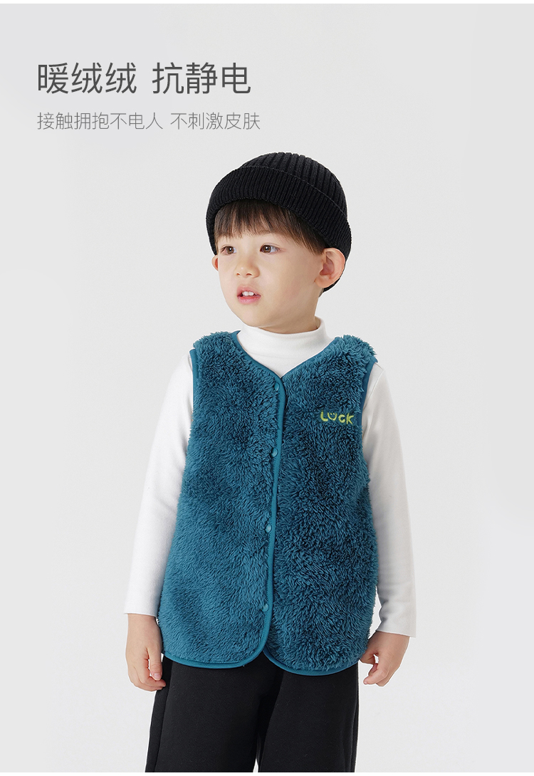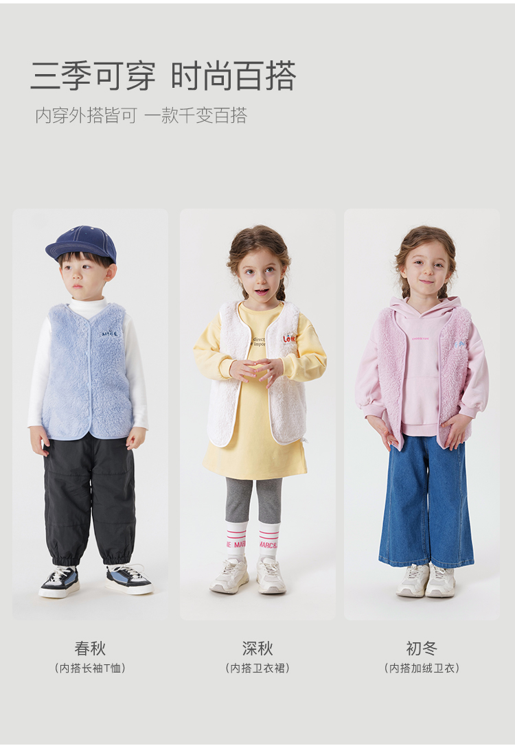 [校服神器]马克珍妮男女童刺绣双面舒棉绒背心宝宝早秋马甲241380