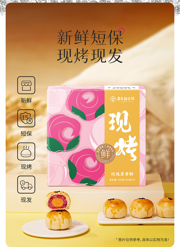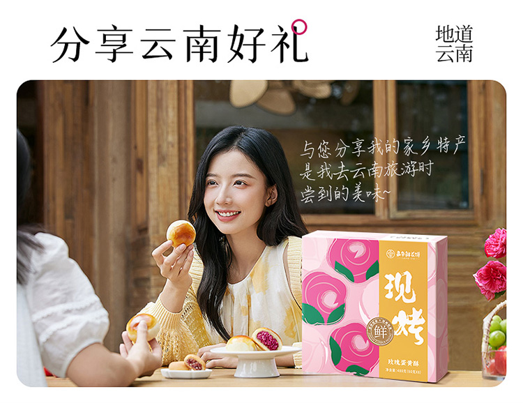 现烤玫瑰蛋黄酥8枚装 云南美味零食小吃玫瑰饼干糕点