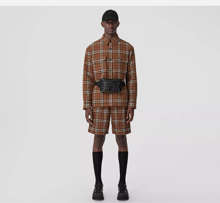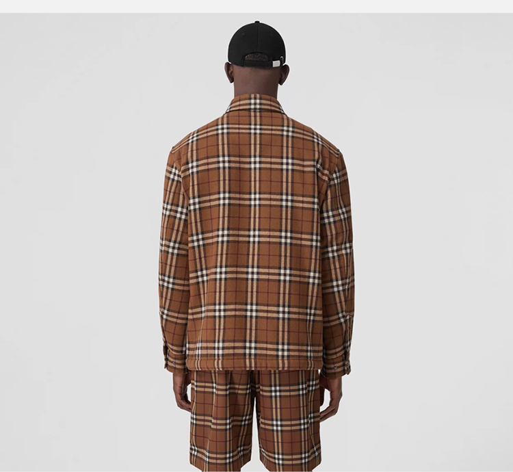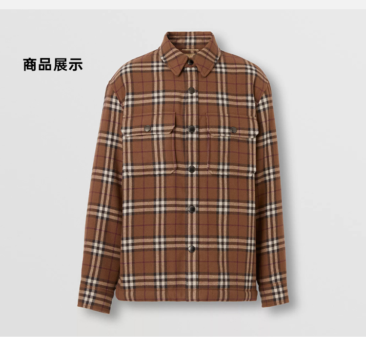 BURBERRY 博柏利 Vintage 格纹羊毛混纺外套式衬衫 男士外套 桦木棕 8057372 A8894