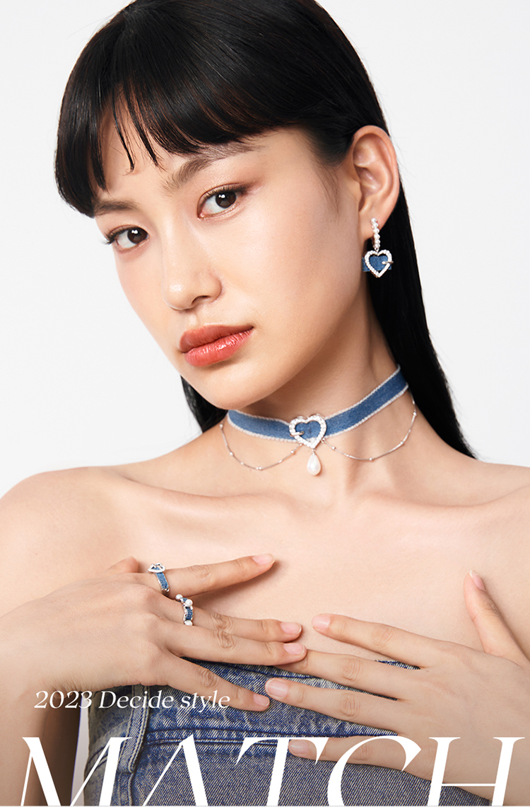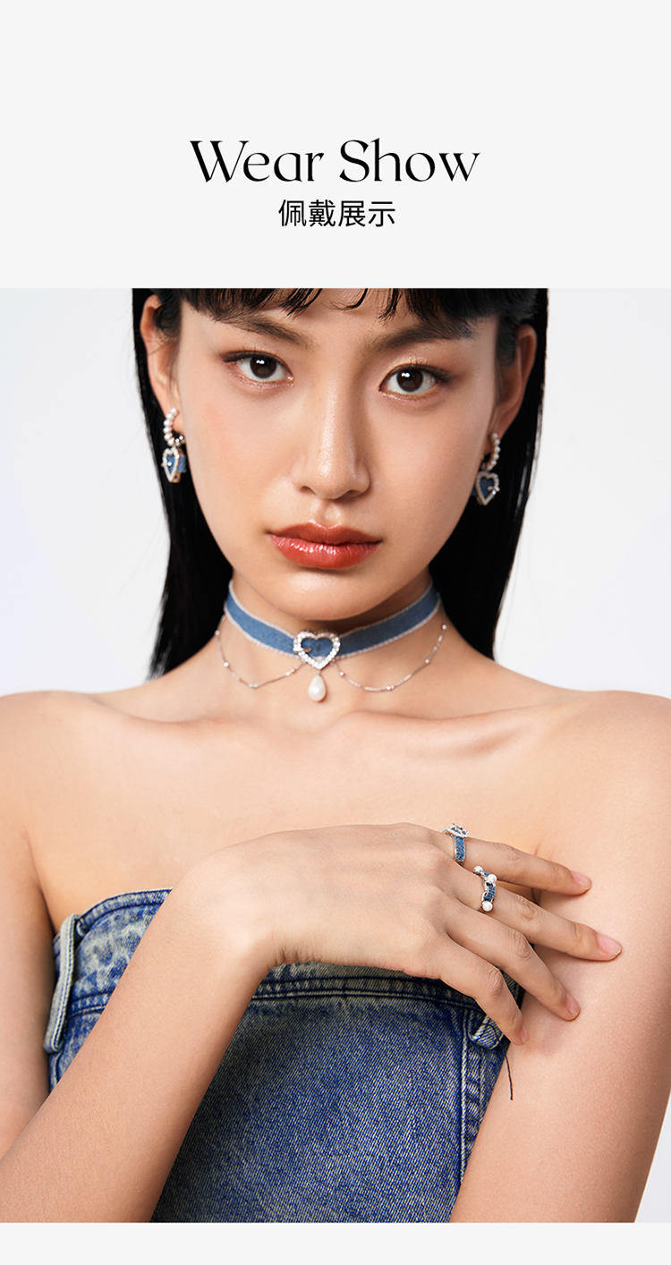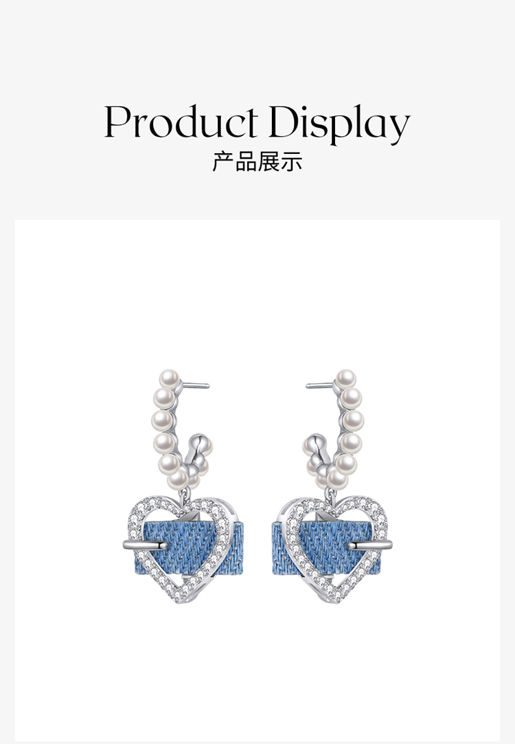 ZEGL设计师丹宁系列牛仔风爱心仿珍珠耳环女复古甜酷耳钉银针耳饰