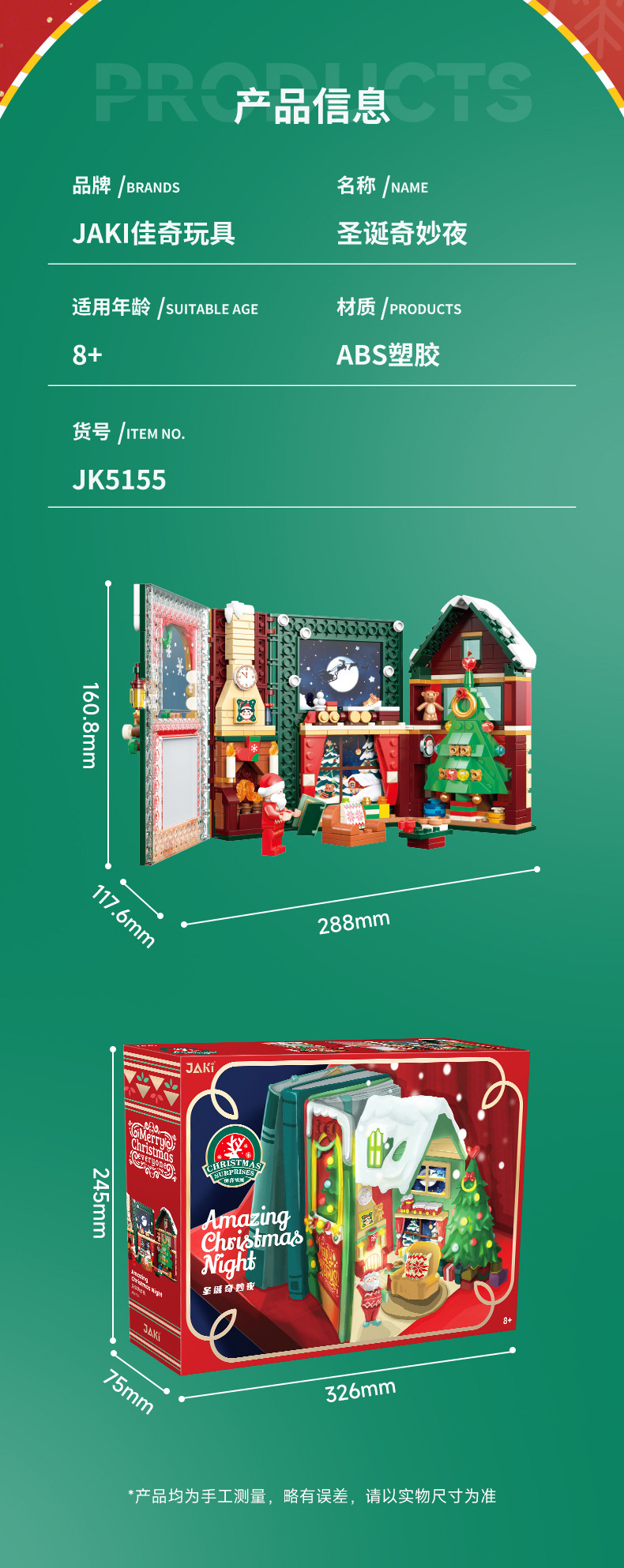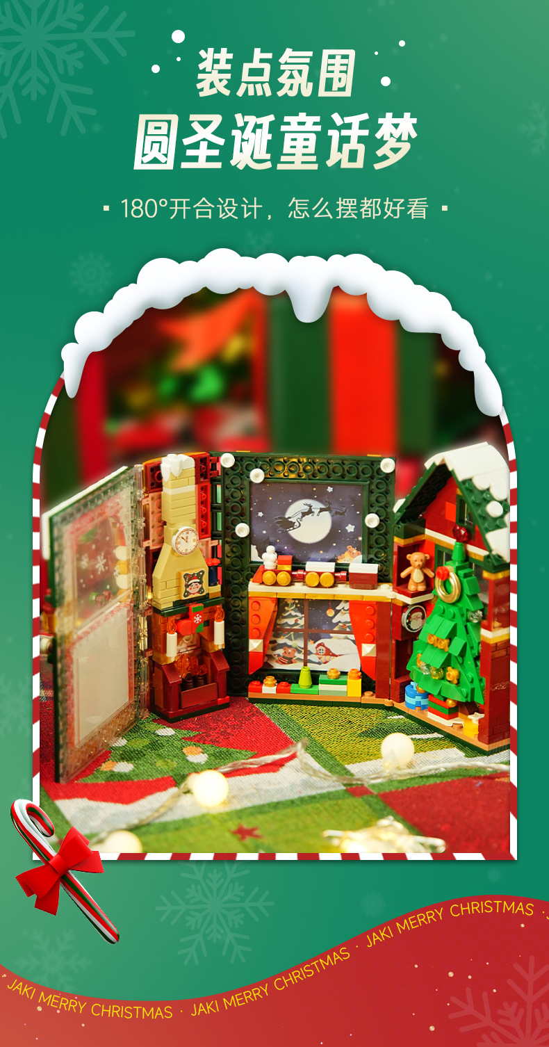 「三重折叠展开!圣诞奇妙夜」JAKI佳奇圣诞奇妙夜 小颗粒积木圣诞树立体积木桌面摆件女孩圣诞节精品礼物 家居饰品
