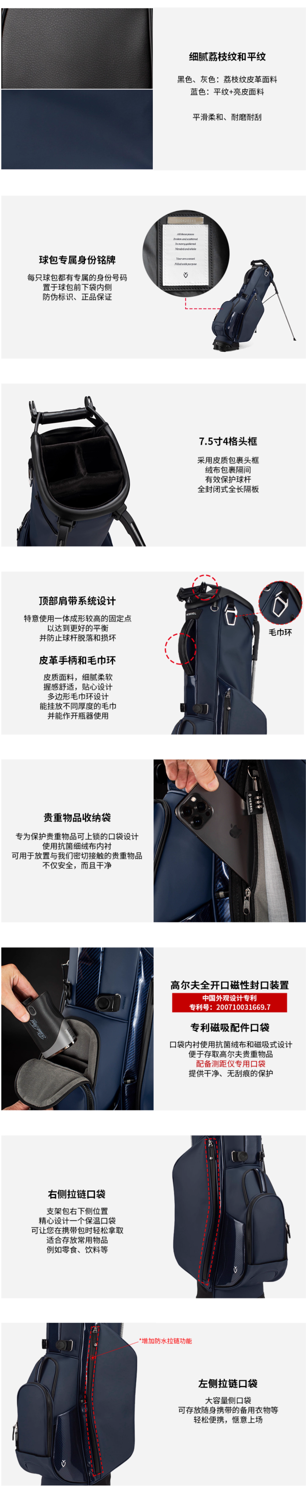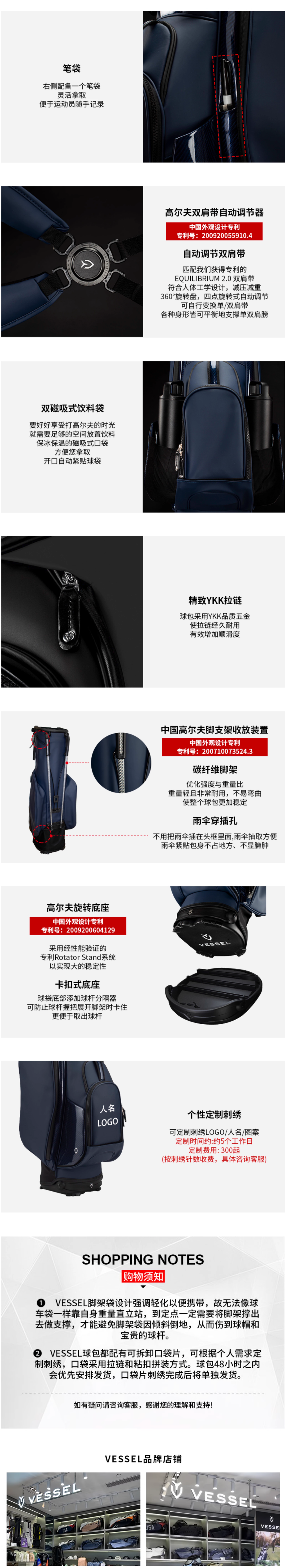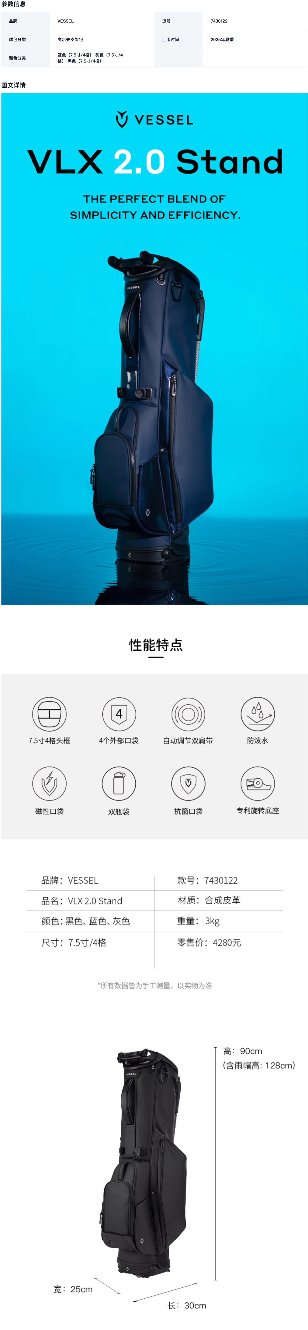 VESSEL VLX 2.0 Stand 2025新款 高尔夫球包轻便防泼水golfbag易携支架包男女7.5寸7430122