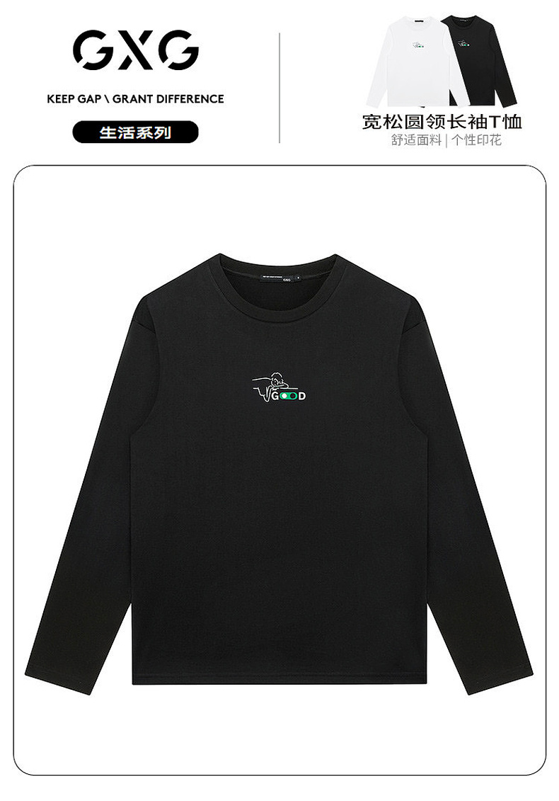 GXG男装【100%棉】秋季卡通人物印花男士日常简约打底t恤K&C