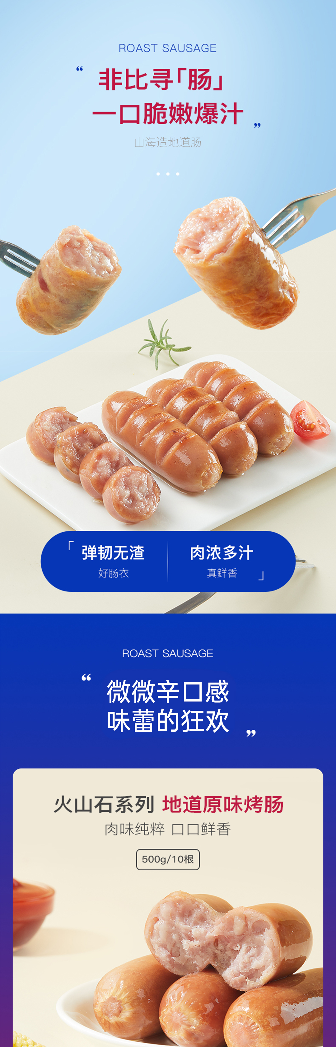山海造地道火山石烤肠黑胡椒肉肠原味香肠脆皮香肠,口口满足,地道风味,脆皮香肠!