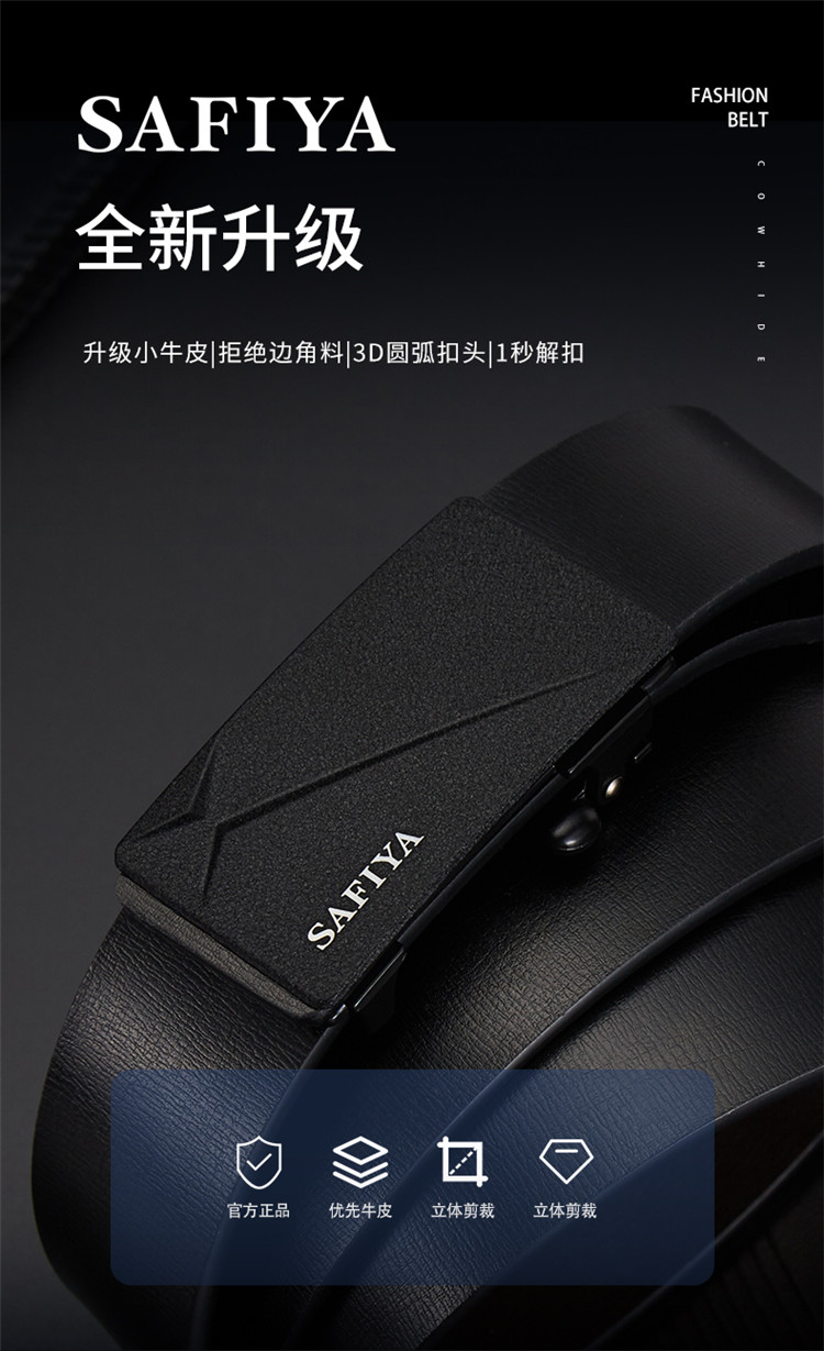 Safiya/索菲娅 二层牛皮男士皮带时尚自动扣皮带商务休闲百搭腰带男SF506014Y