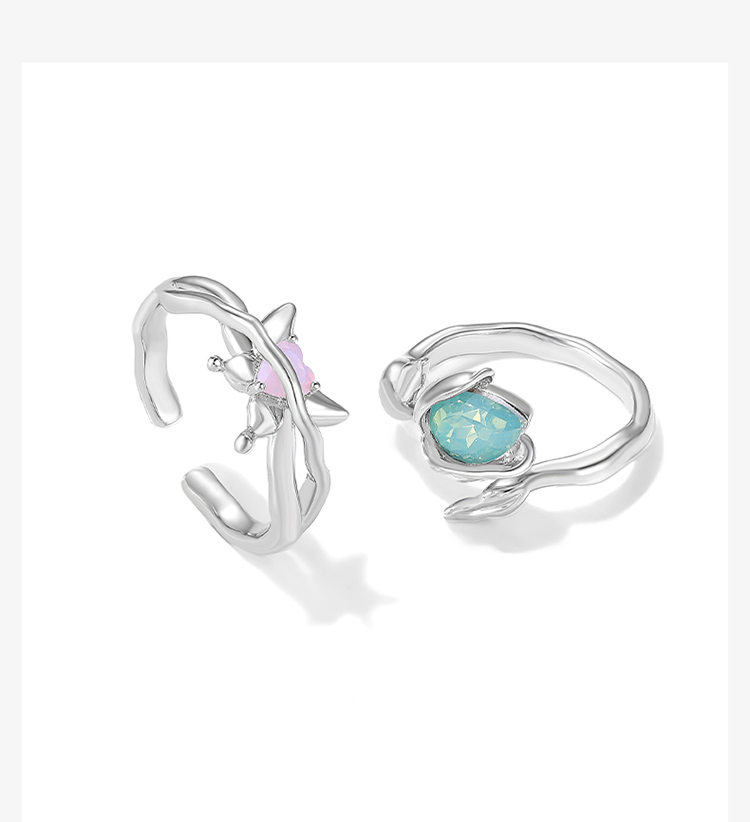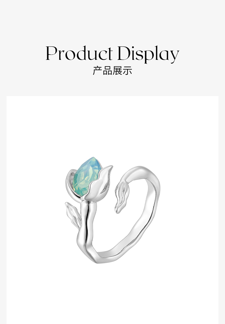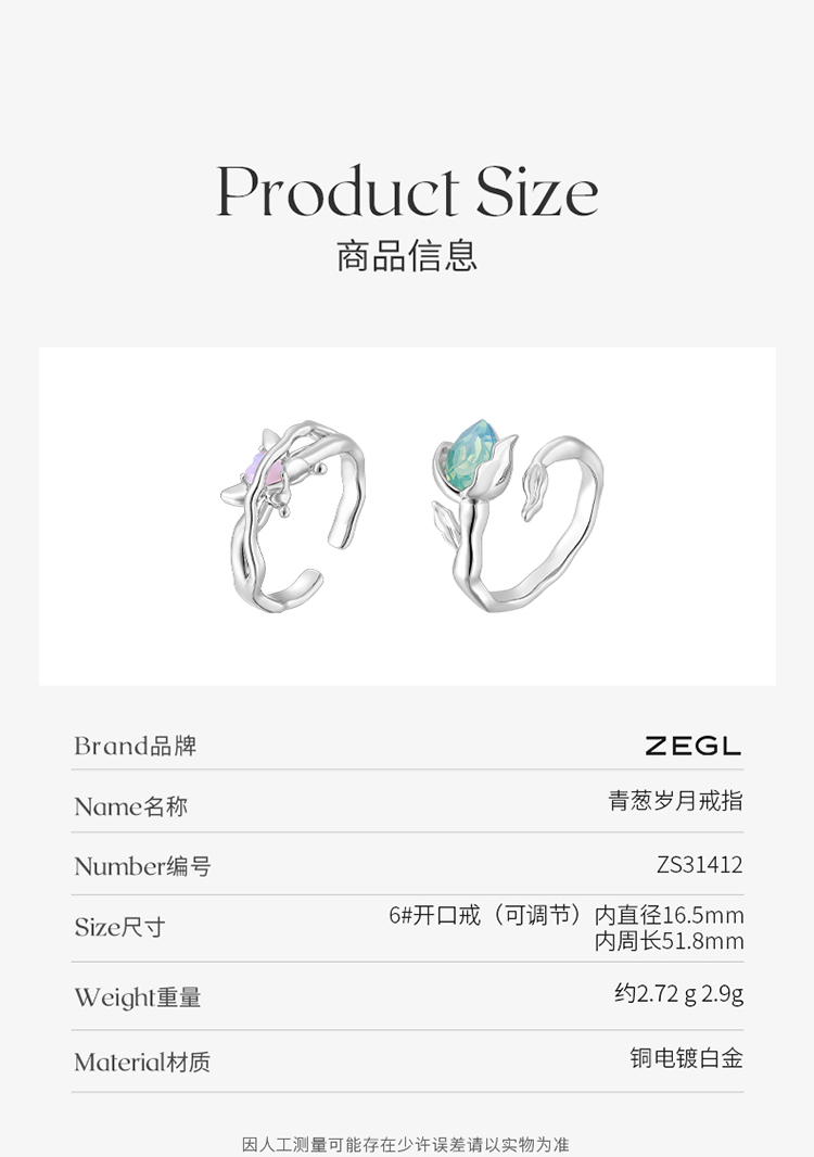 ZEGL设计师郁郁青葱系列郁金香开口戒指女小众设计指环蝴蝶食指戒