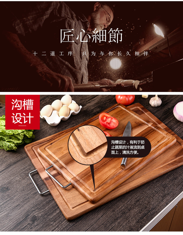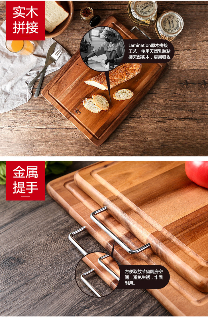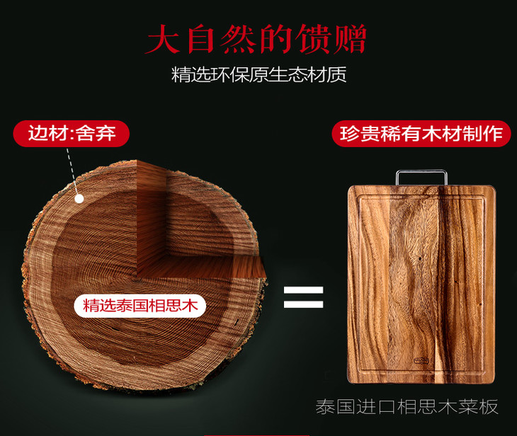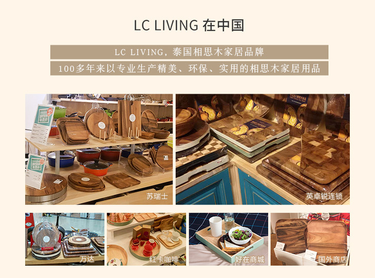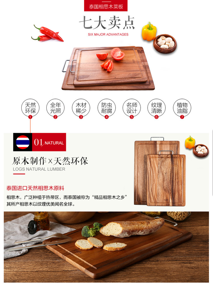 泰国进口LC LIVING相思木原木色带提手长方菜板小号MP40