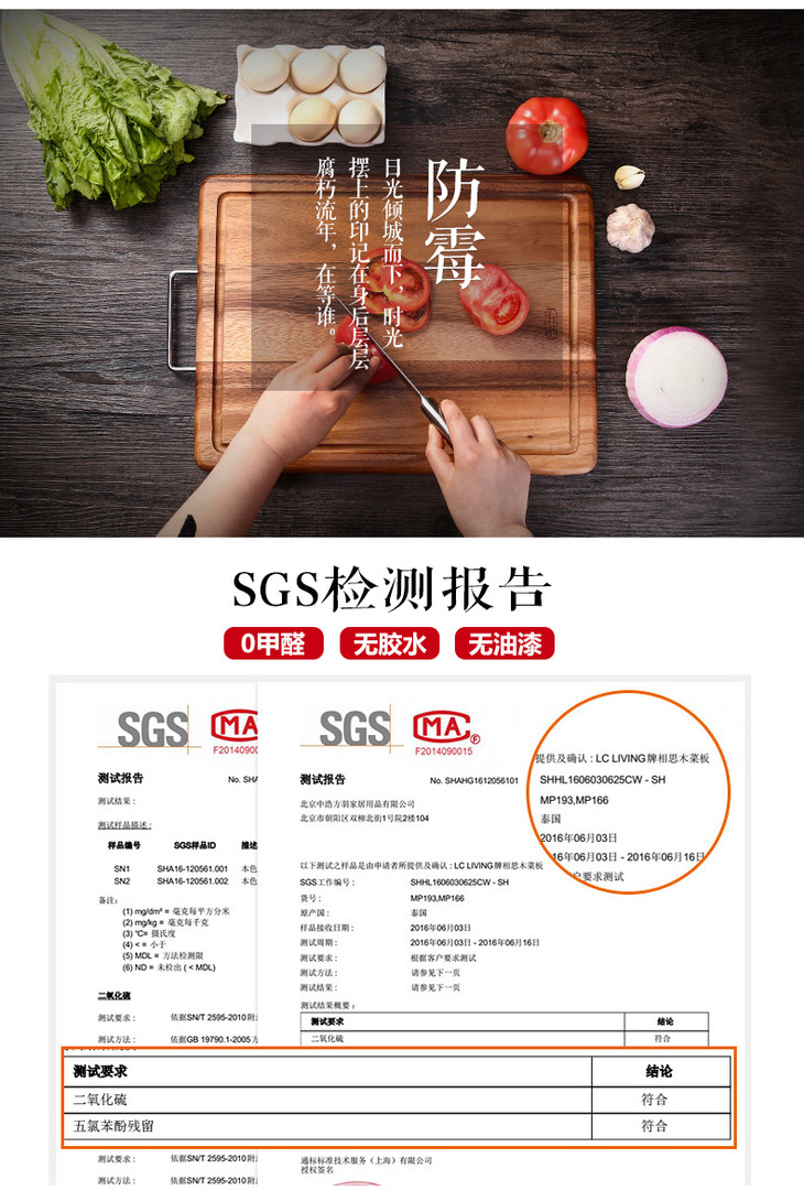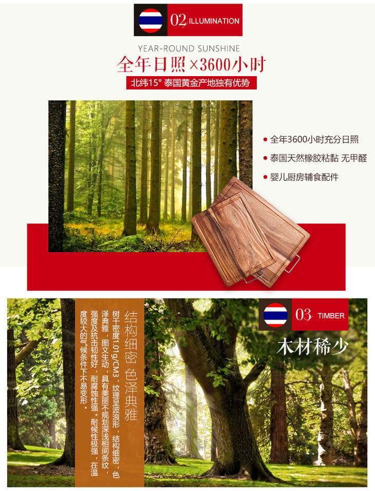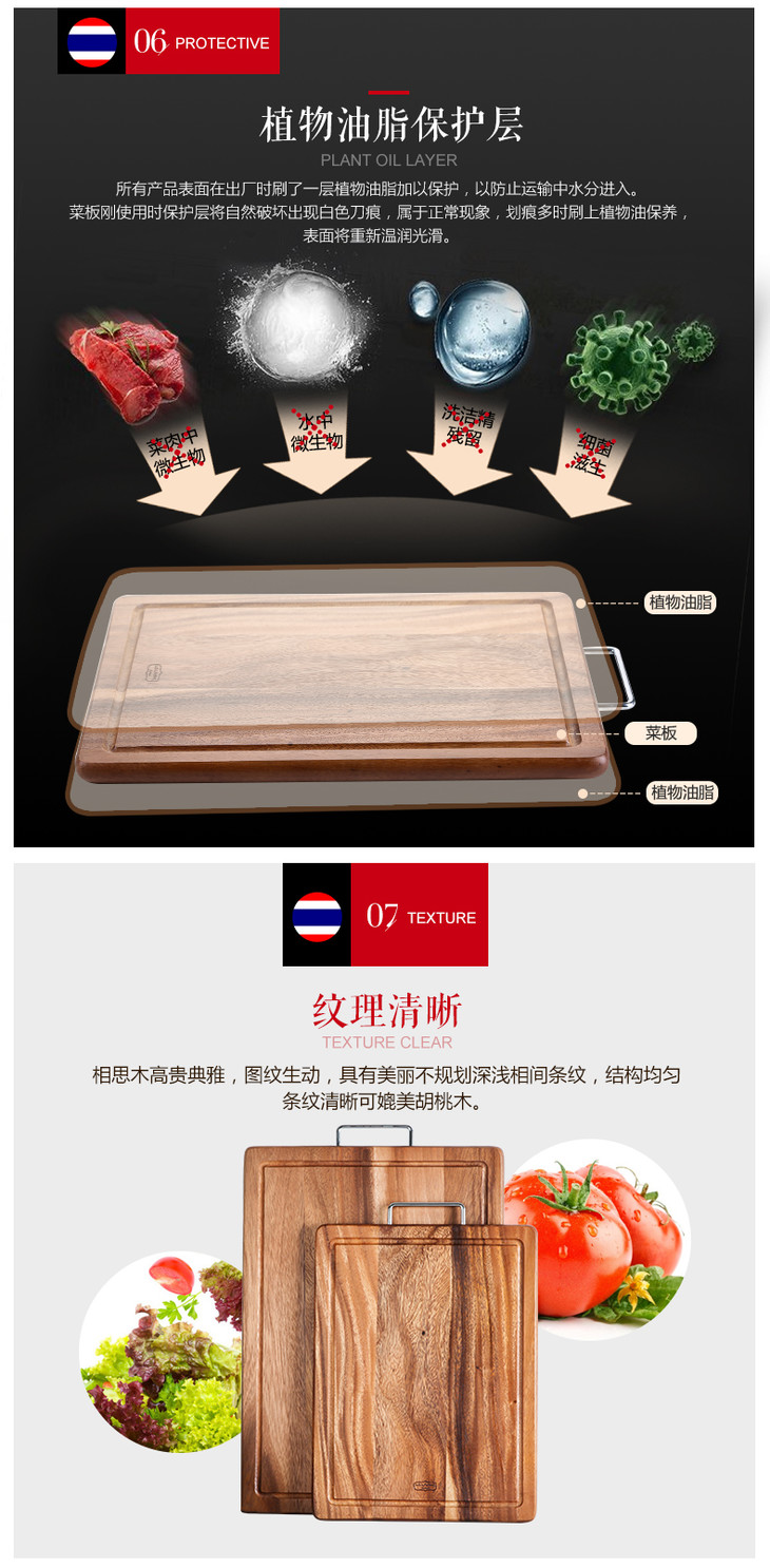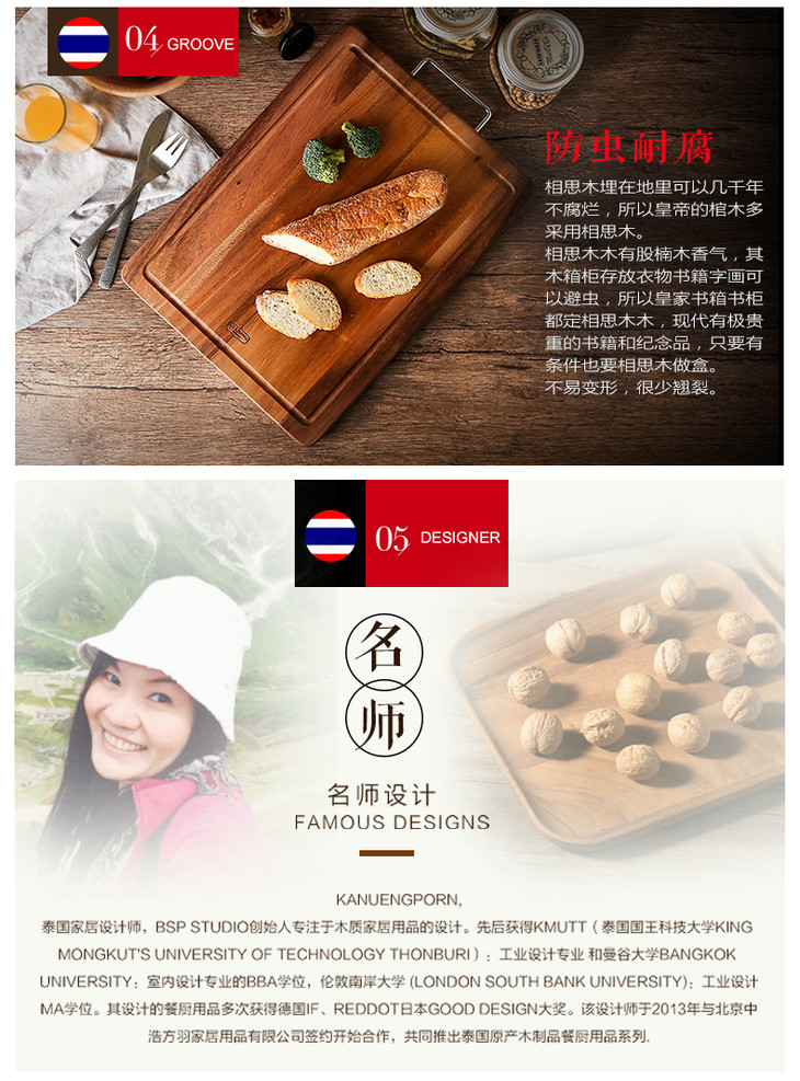 泰国进口LC LIVING相思木原木色带提手长方菜板小号MP40