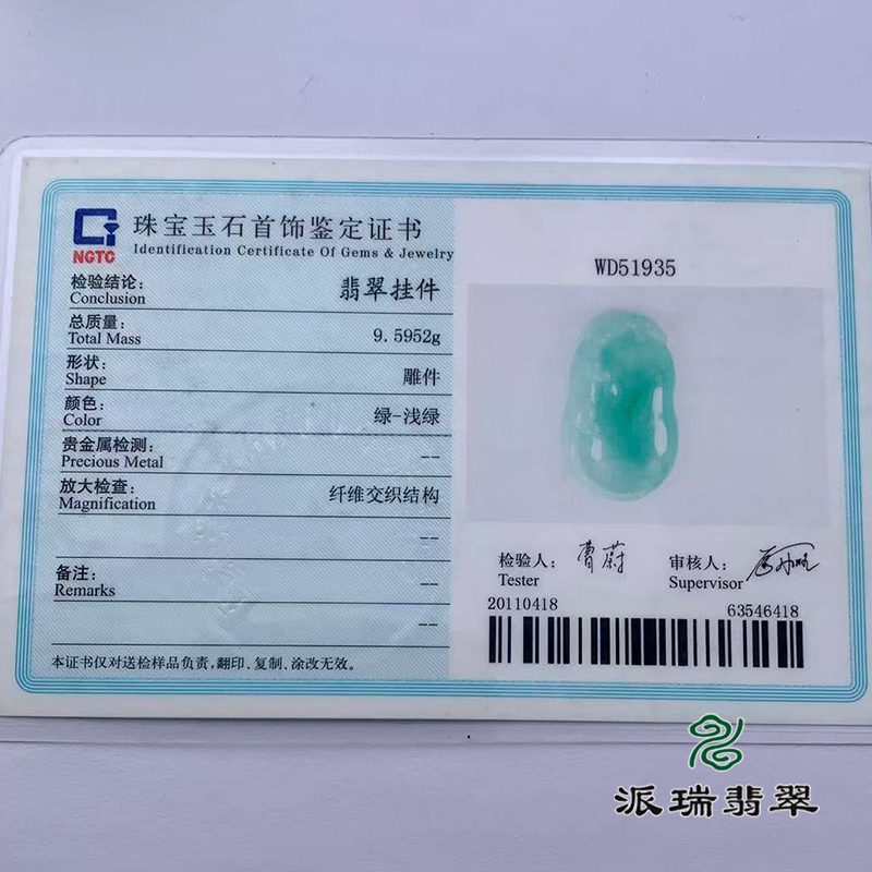 派瑞翡翠 翡翠挂件 糯冰 浅绿