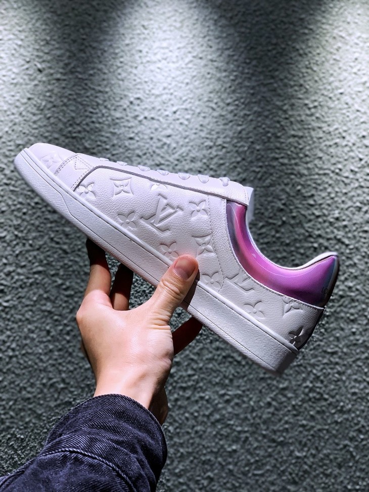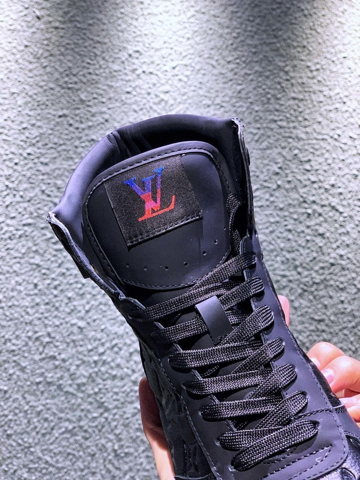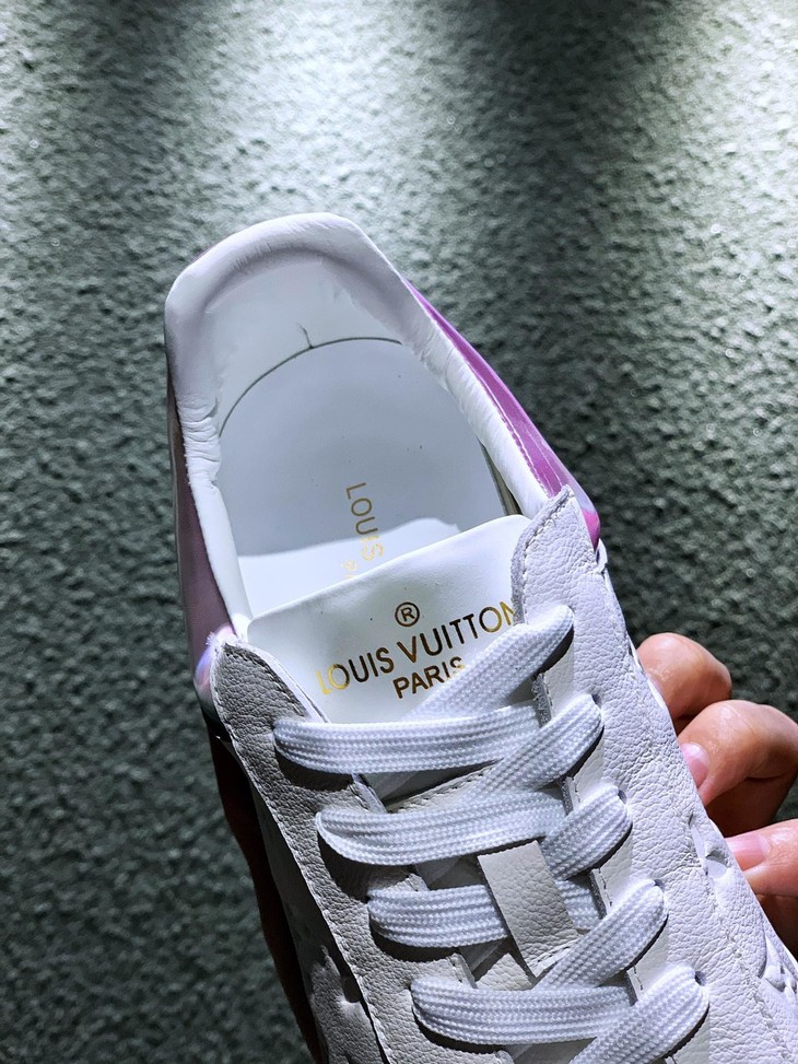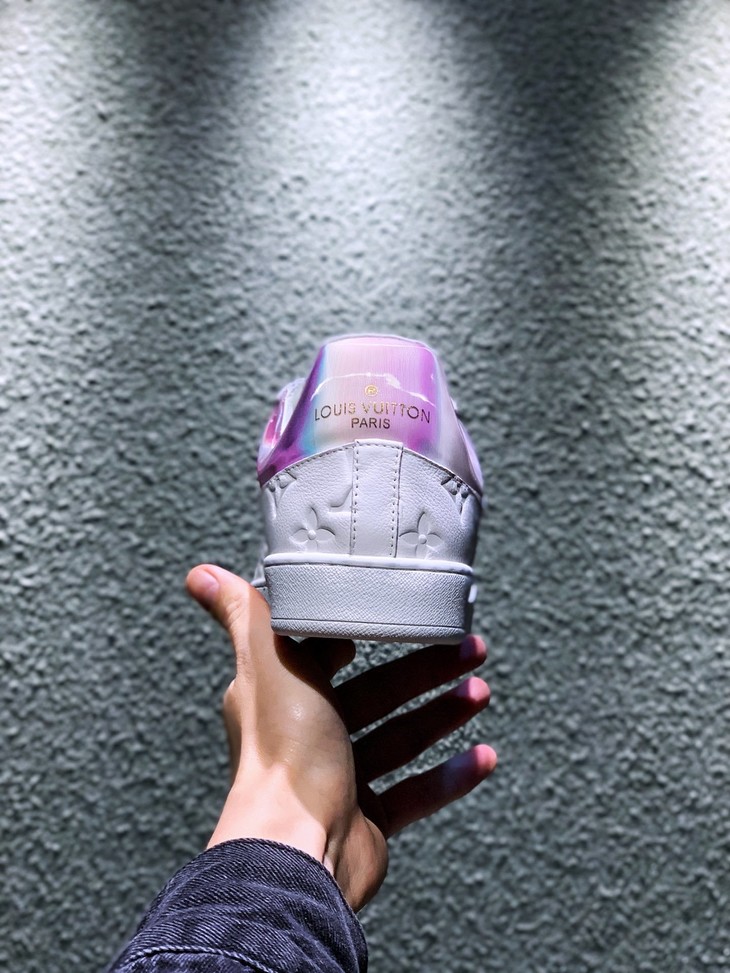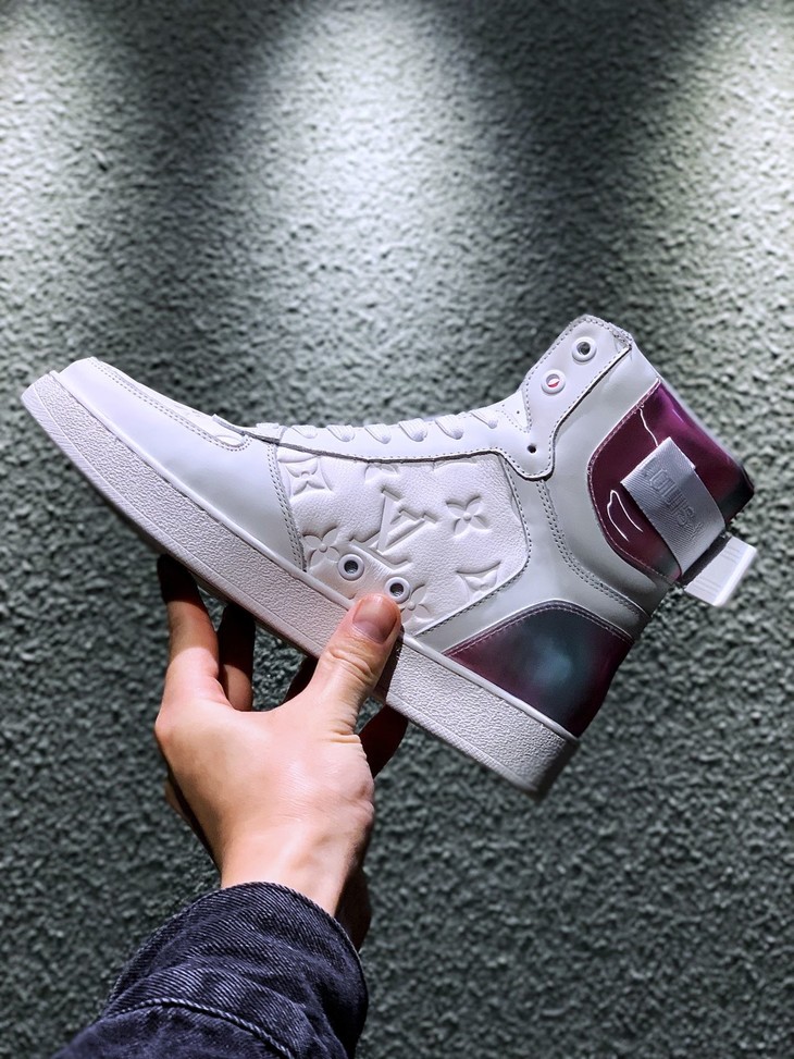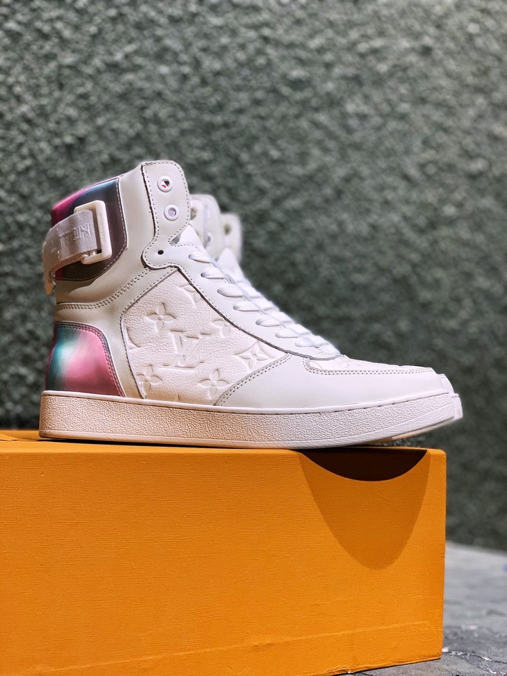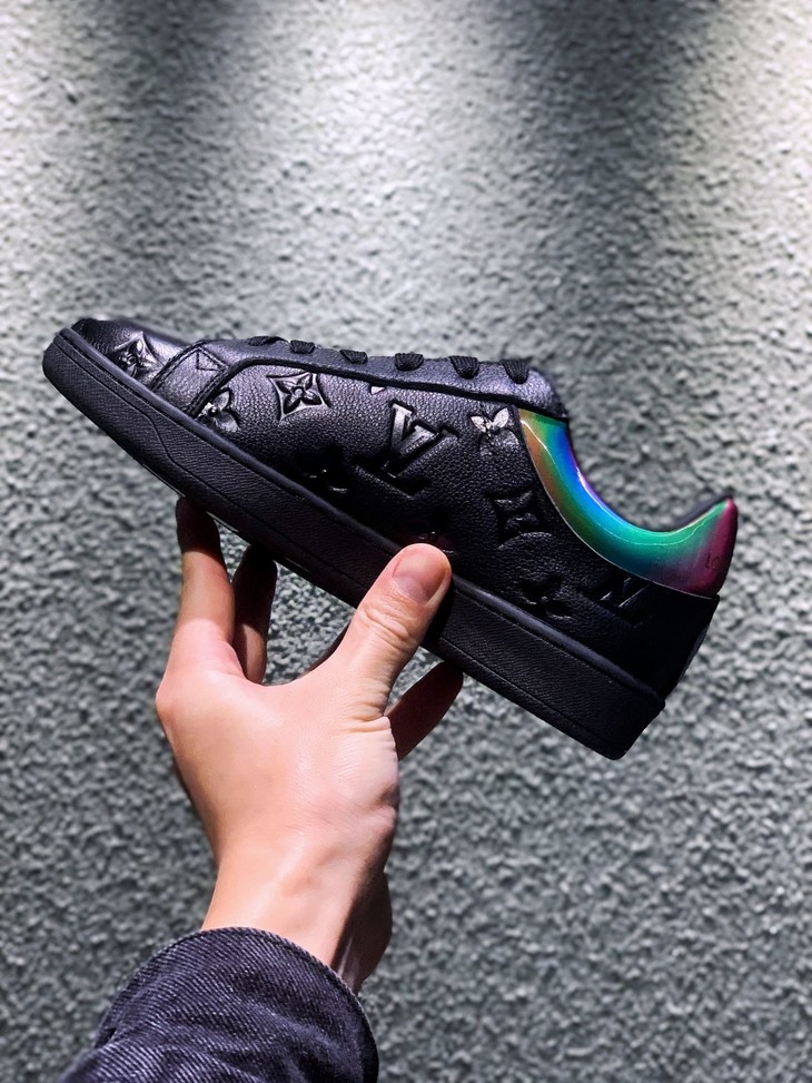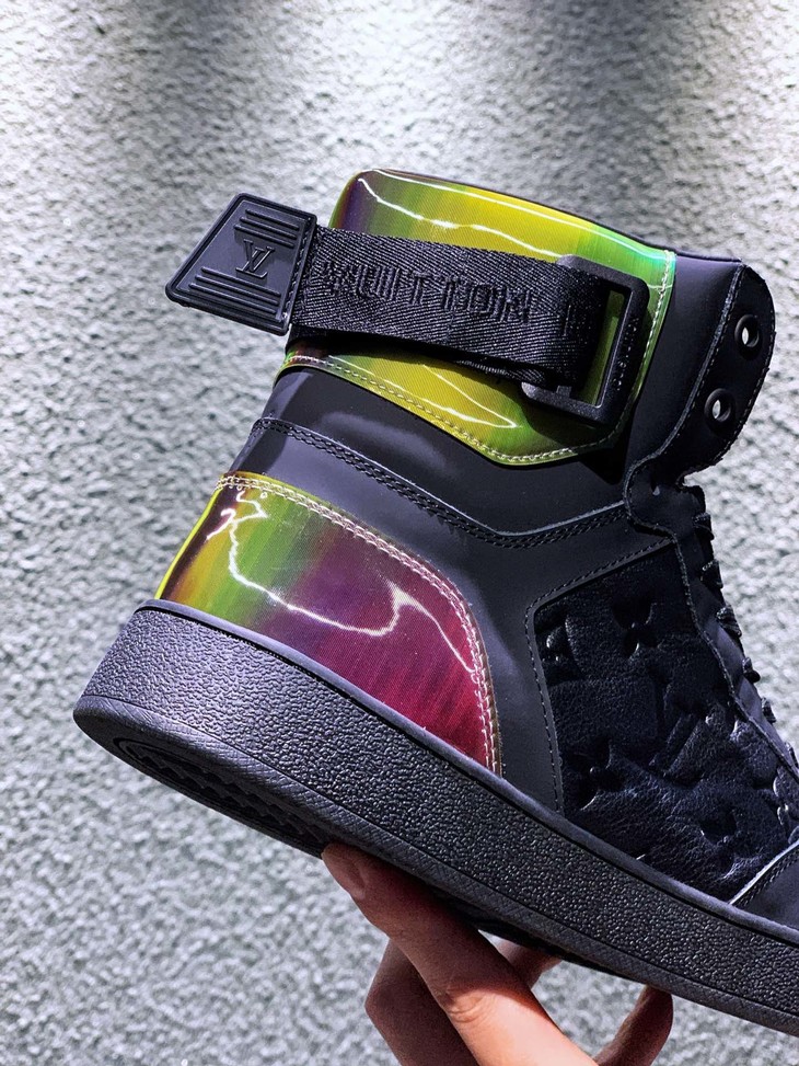 路易威登LV 低帮 高帮 运动靴 镭射黑 镭射白 20年春夏限量版 彩虹尾🌈以彩虹织物包覆鞋后和两侧,展现经典设计的潮流演绎。魔术贴标注路易威登标识 百搭鞋底Size: 35--44