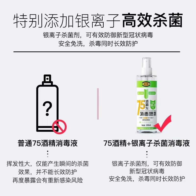 75%酒精+银离子杀菌消毒喷雾100mlX5瓶