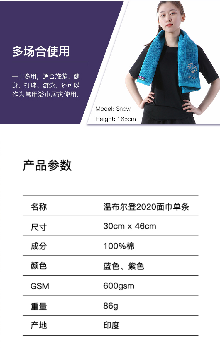 限时特惠|Wimbledon运动系列 经典款面巾 买一赠一