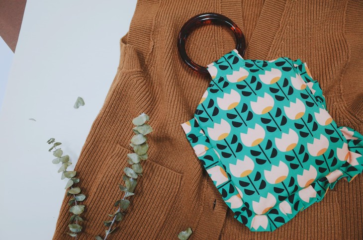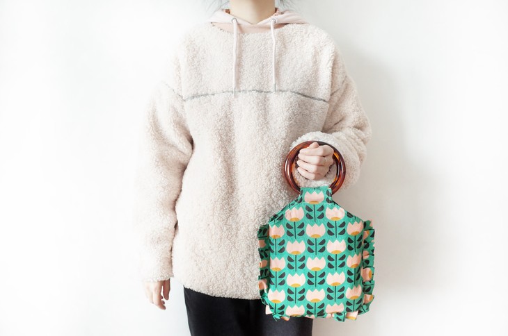 HUJI祤集荷叶边圆环柄手提包插画小小郁金香