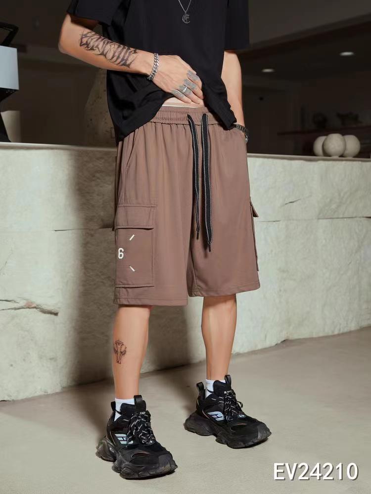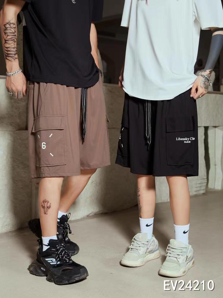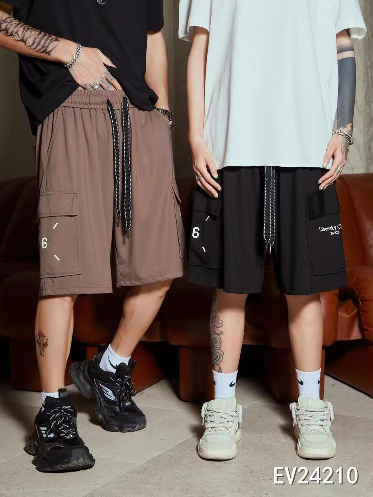 24210# 日系复古口袋工装短裤男生宽松休闲日潮中裤五分裤 黑色