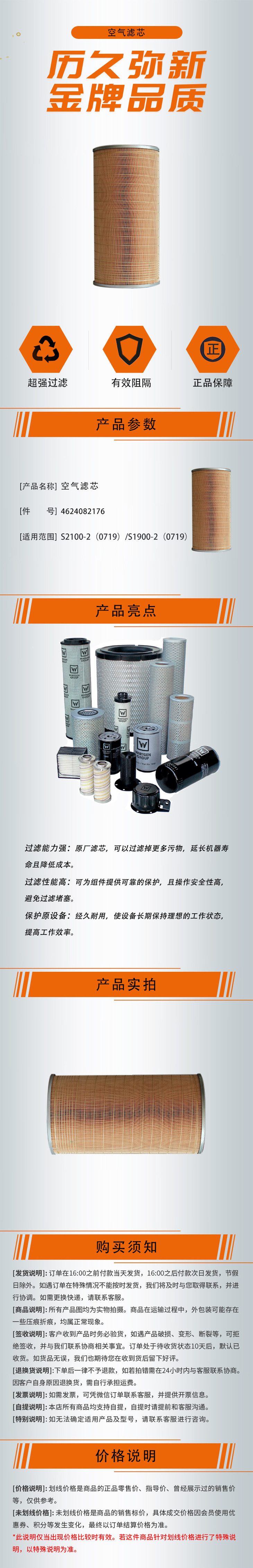 【空气滤芯4624082176】 适用于S2100-2(0719)/S1900-2(0719)