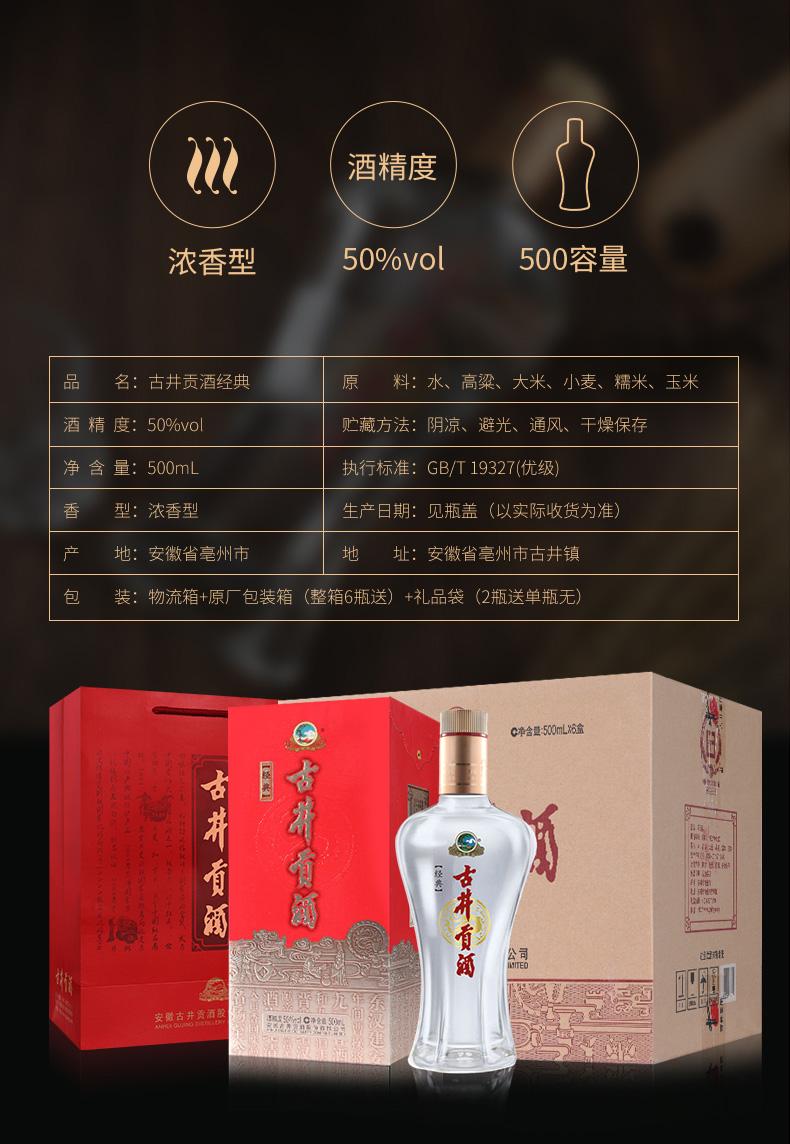 古井贡酒500ml*6瓶 纯粮整箱 浓香型白酒 50度 包邮