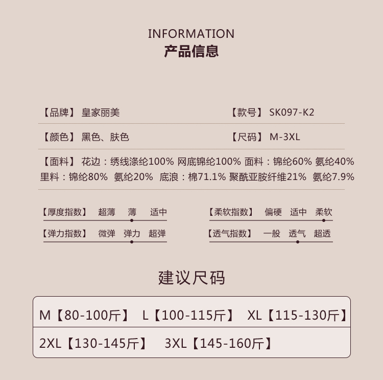 皇家丽美「繁花似锦系列」塑身收腹提臀长束裤塑形衣SK097-K2