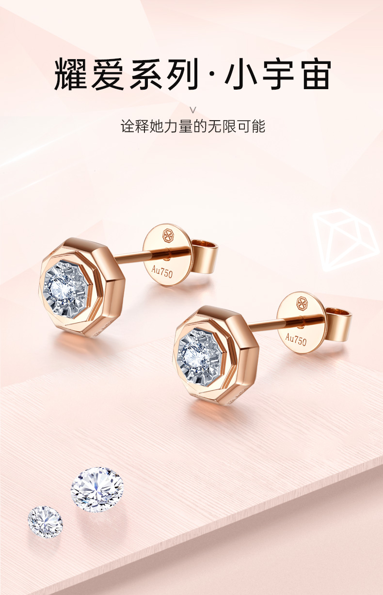 【甄选钻饰】【专享】【星辰系列】钻石世家耀爱系列·小宇宙 18k金钻石耳钉 八边形设计感耳钉耳饰 绽放多面璀璨,解锁她力量的无限能量
