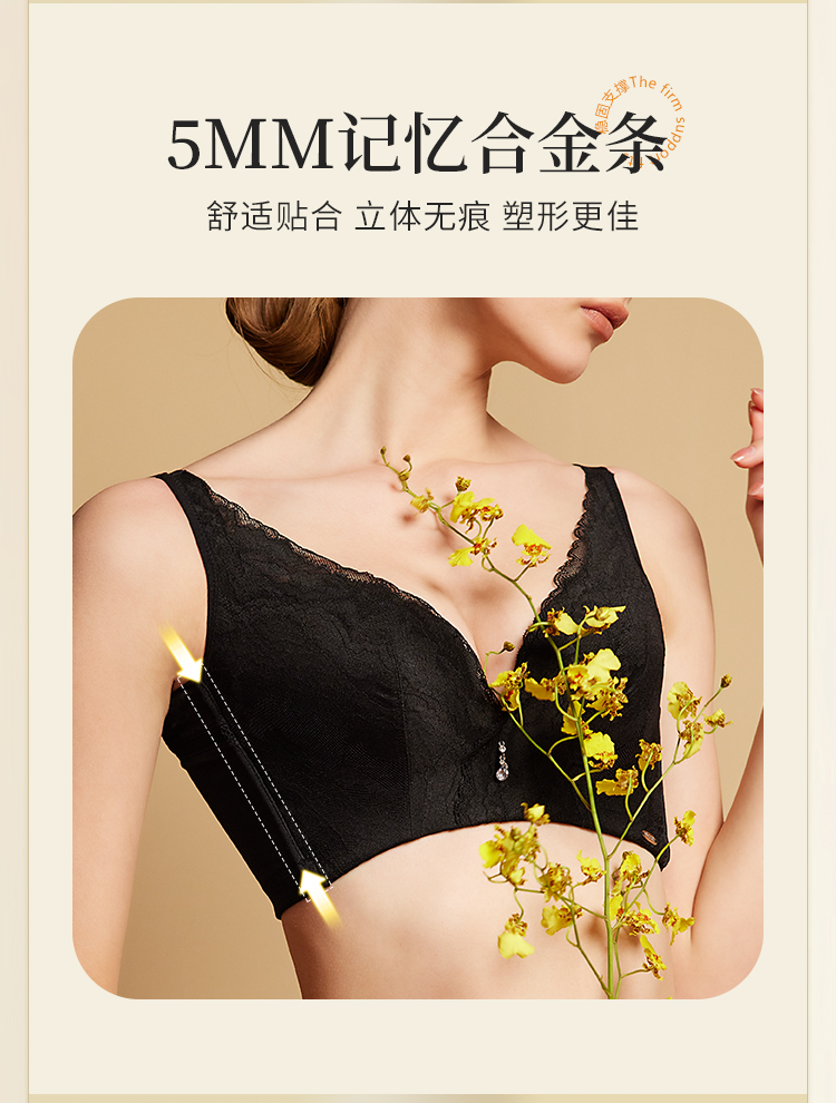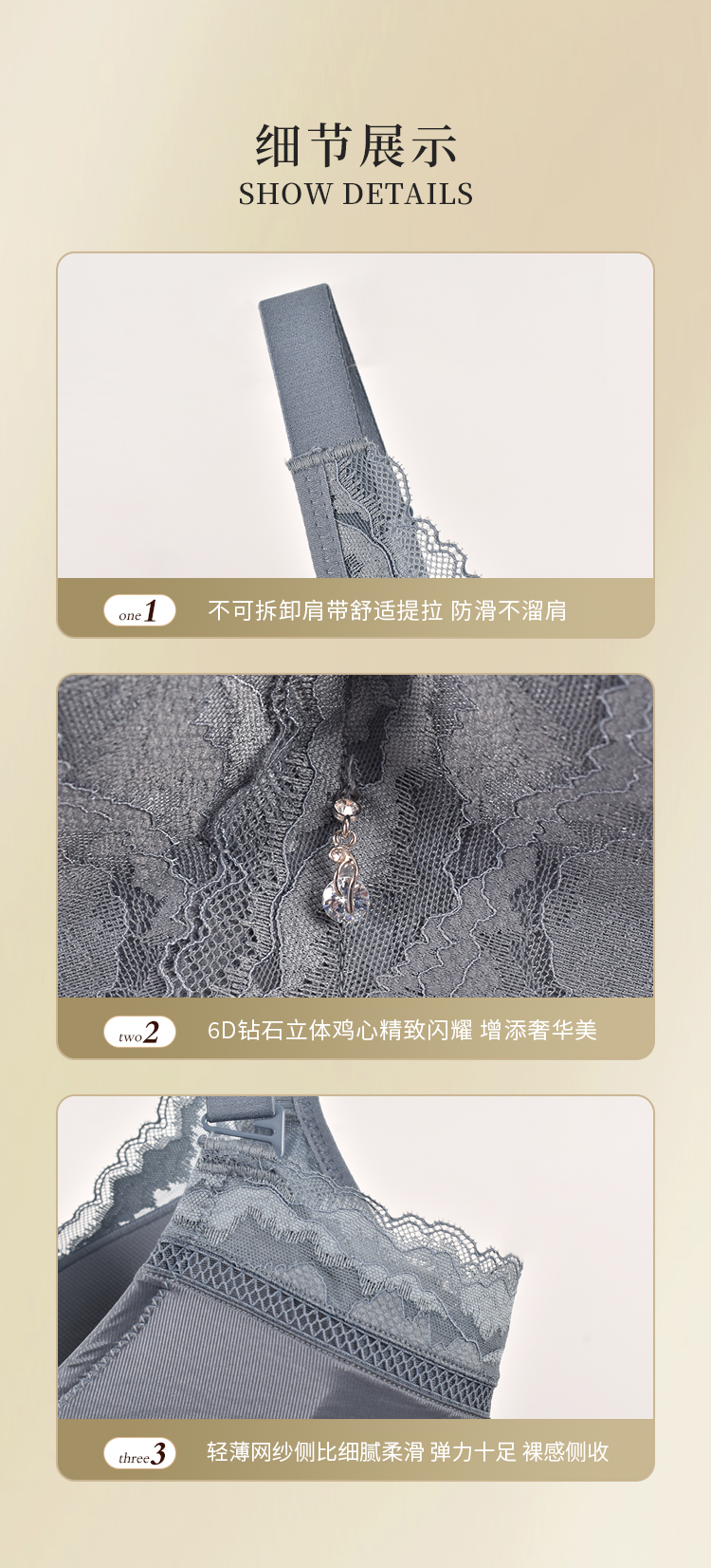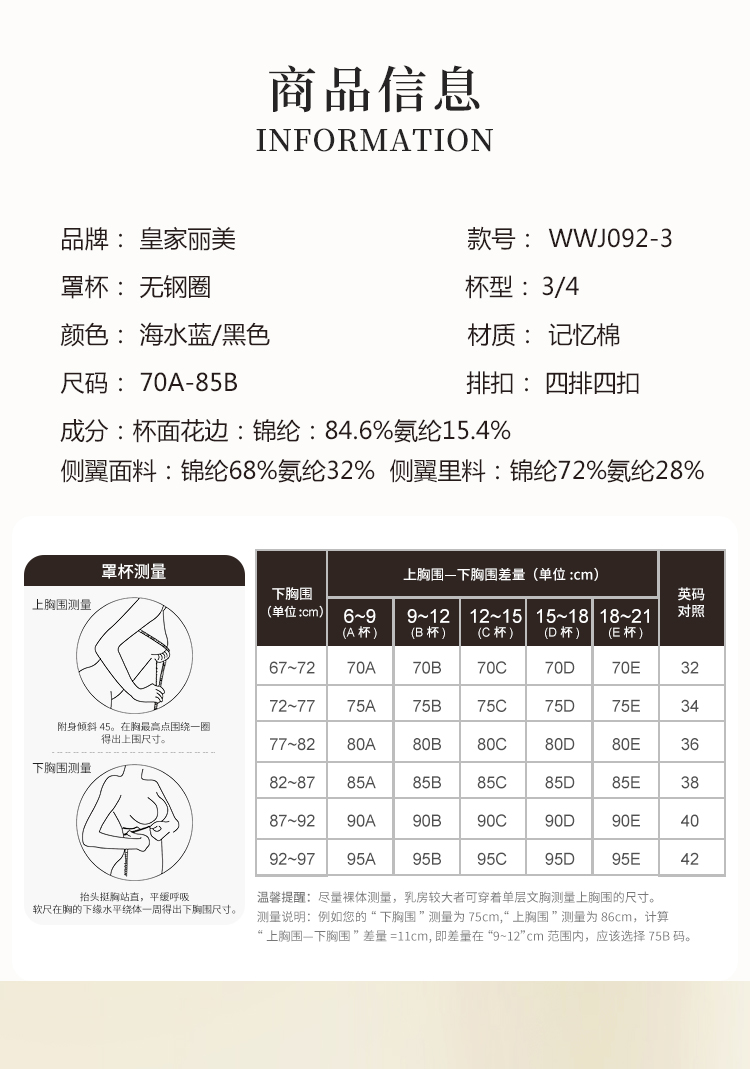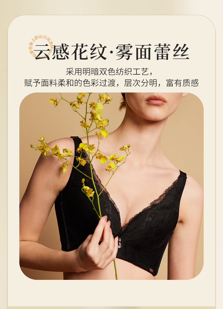 皇家丽美云感花纹雾面蕾丝侧收副乳无钢圈调整型文胸内衣WWJ092-3
