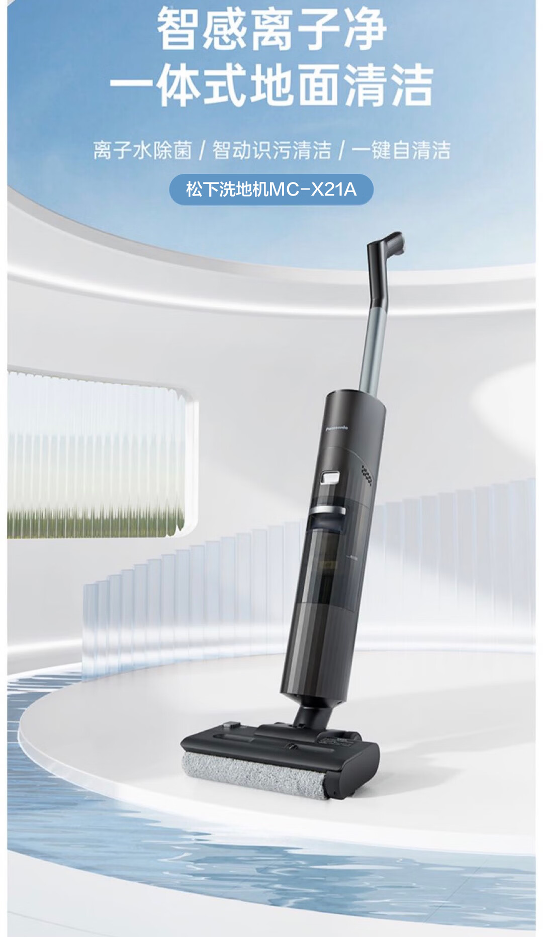 松下(Panasonic)MC-X21A 智能洗地机 离子水除菌家用洗拖吸一体机扫拖吸三合一自动清洗拖地机